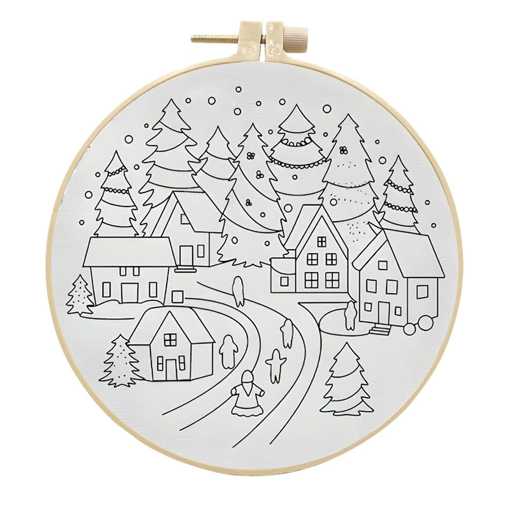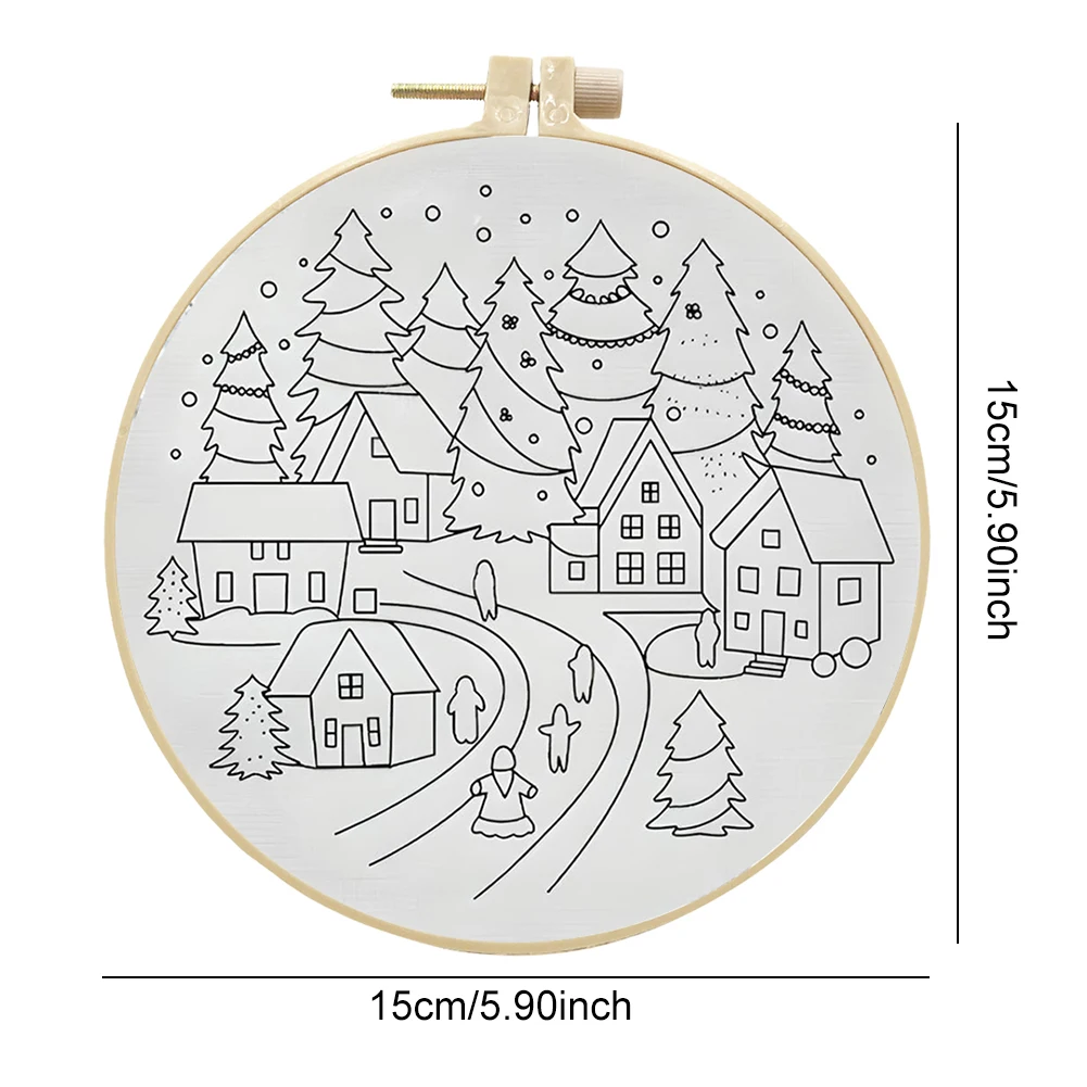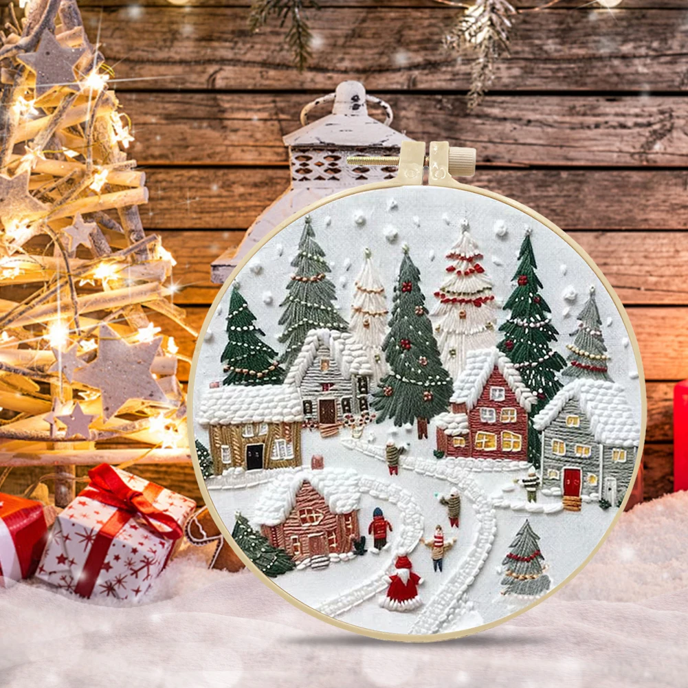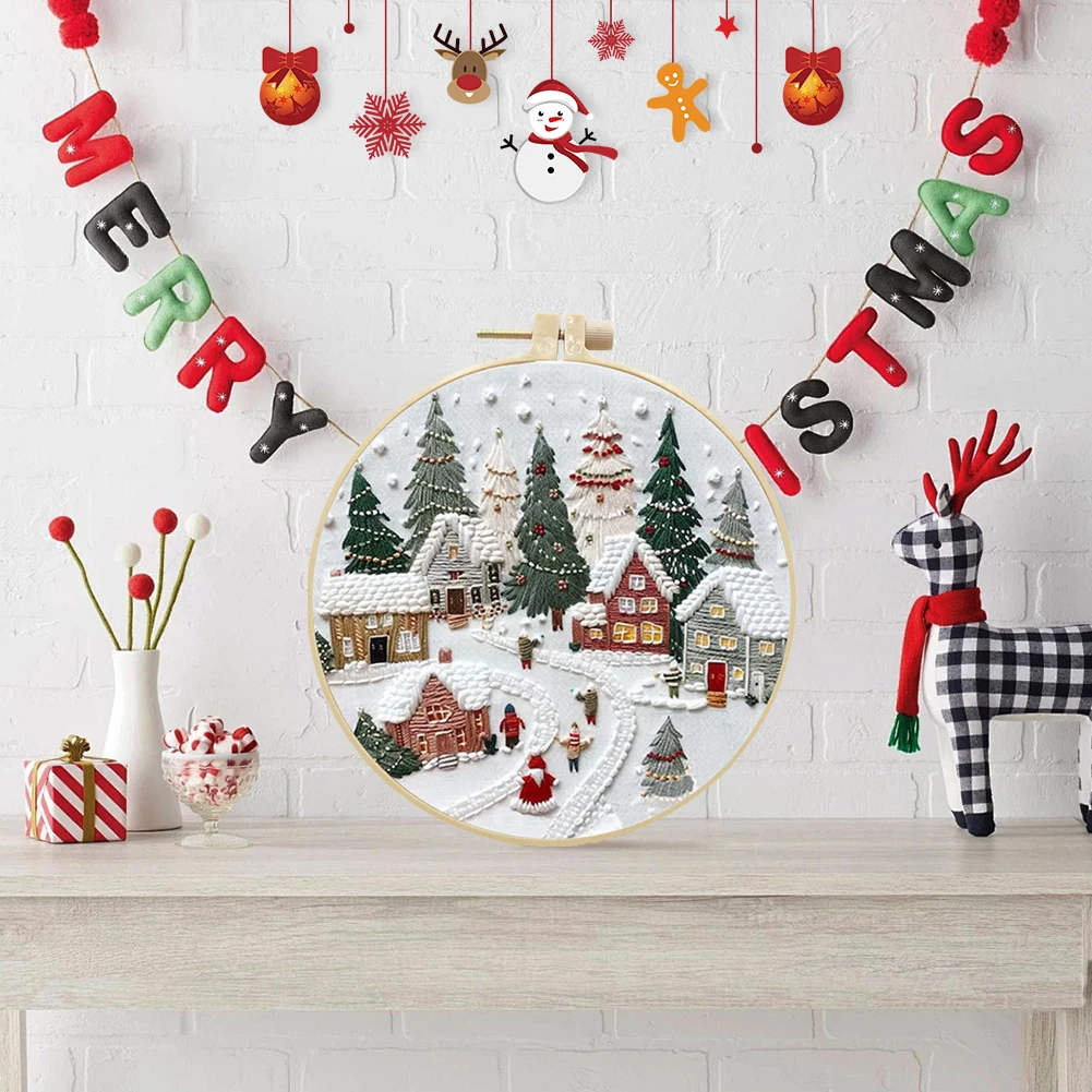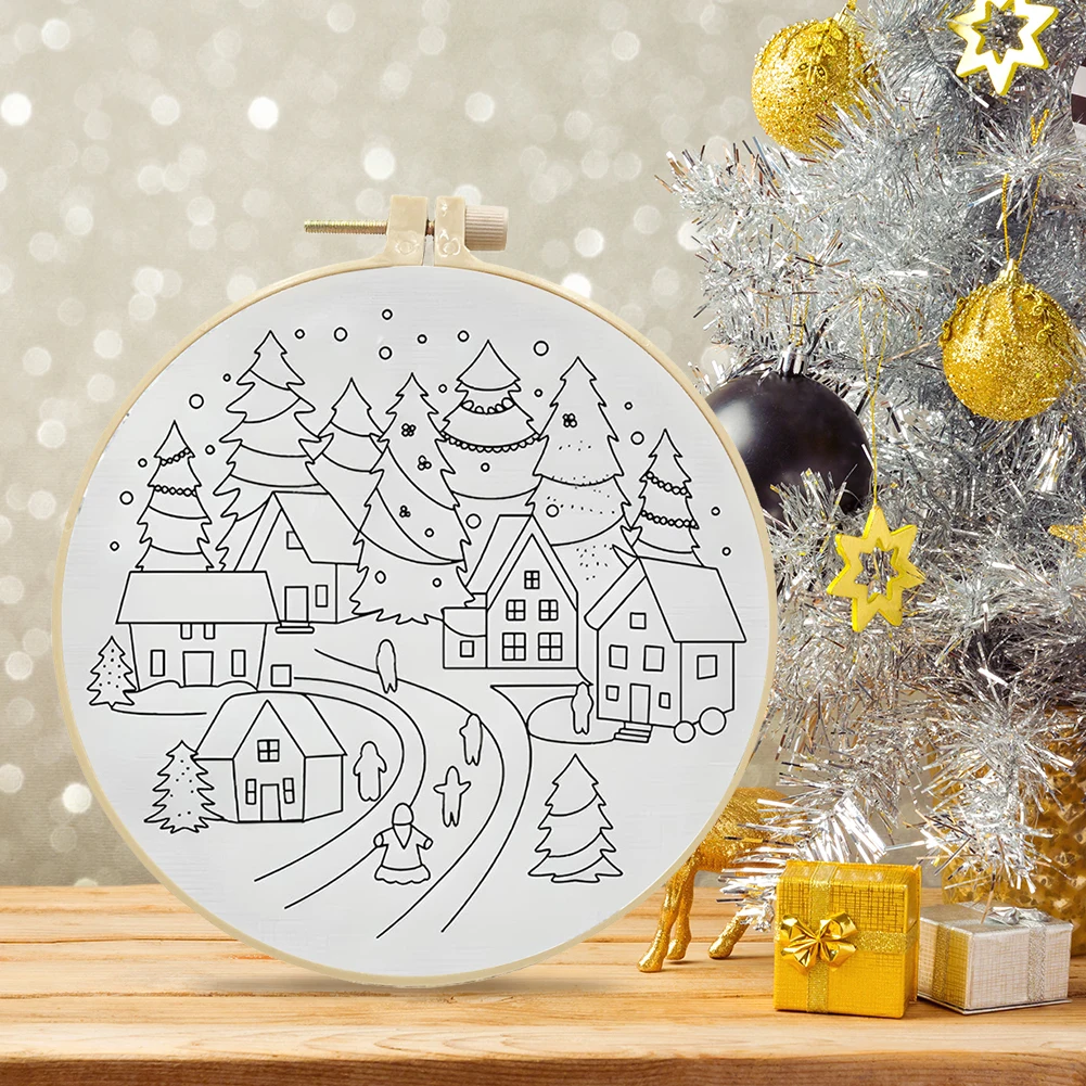1-3Pcs Christmas Cross Stitch DIY Embroidery Kit Christmas Scene Includes Embroidery Hoop Embroidery Cloth Threads Needles