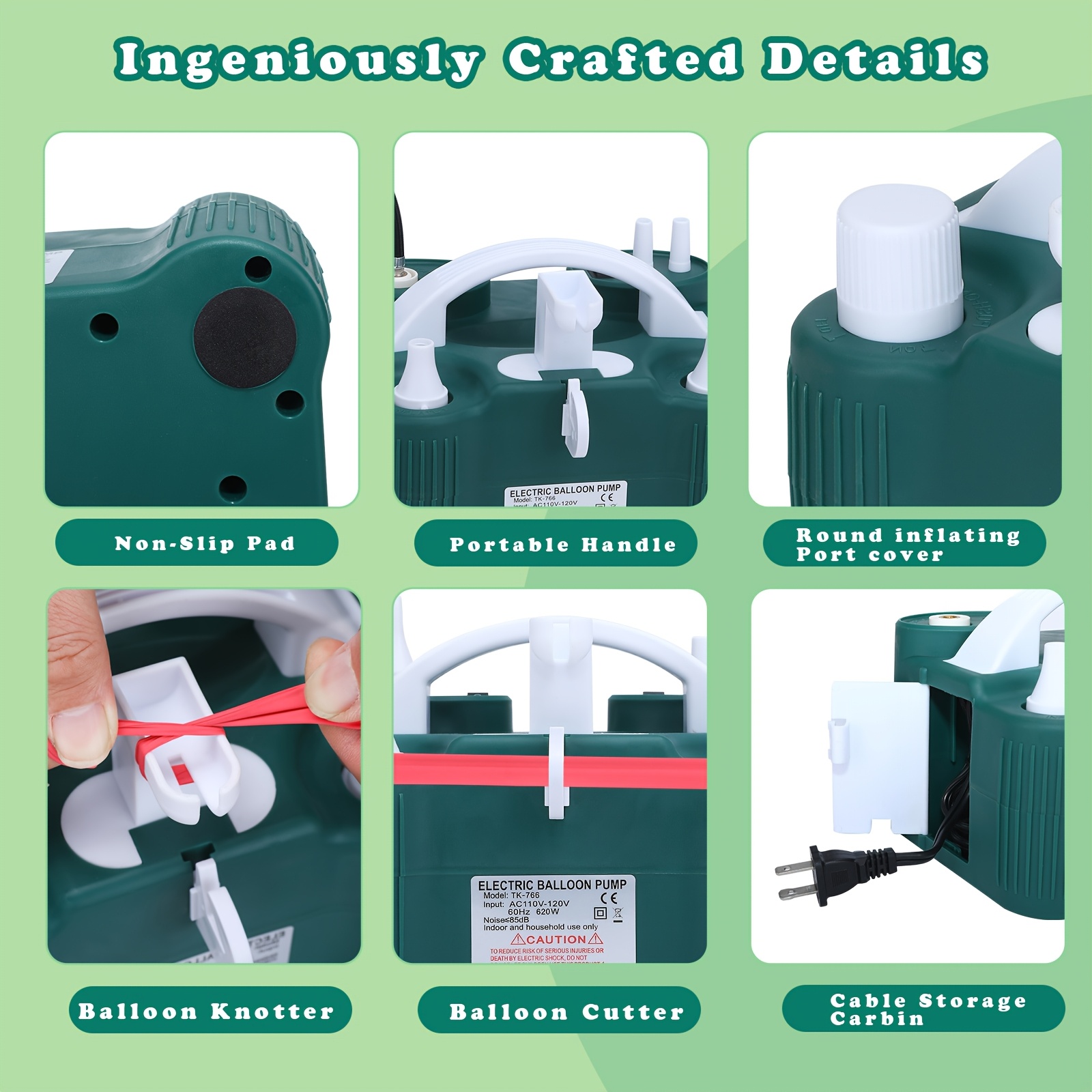 1 Electric Balloon Pump 3-in-1 Portable Air Pump | Fast Inflation for 260q Foil Mylar Latex Double-Stuffed Balloons, Inflator Deflator for Pool, Semi-automatic Operation, Green PP Material, Without Battery