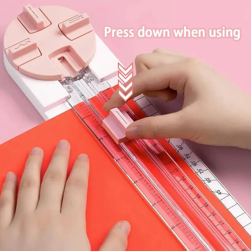 HOW TO USE:When in use, push the corresponding cutter head up and down to aim at the transparent pressure ruler.The compact size of this paper cutter makes it easy to fold and store, saving space in your home or studio.Name: Five selling points 4-in-1 Paper Cutter