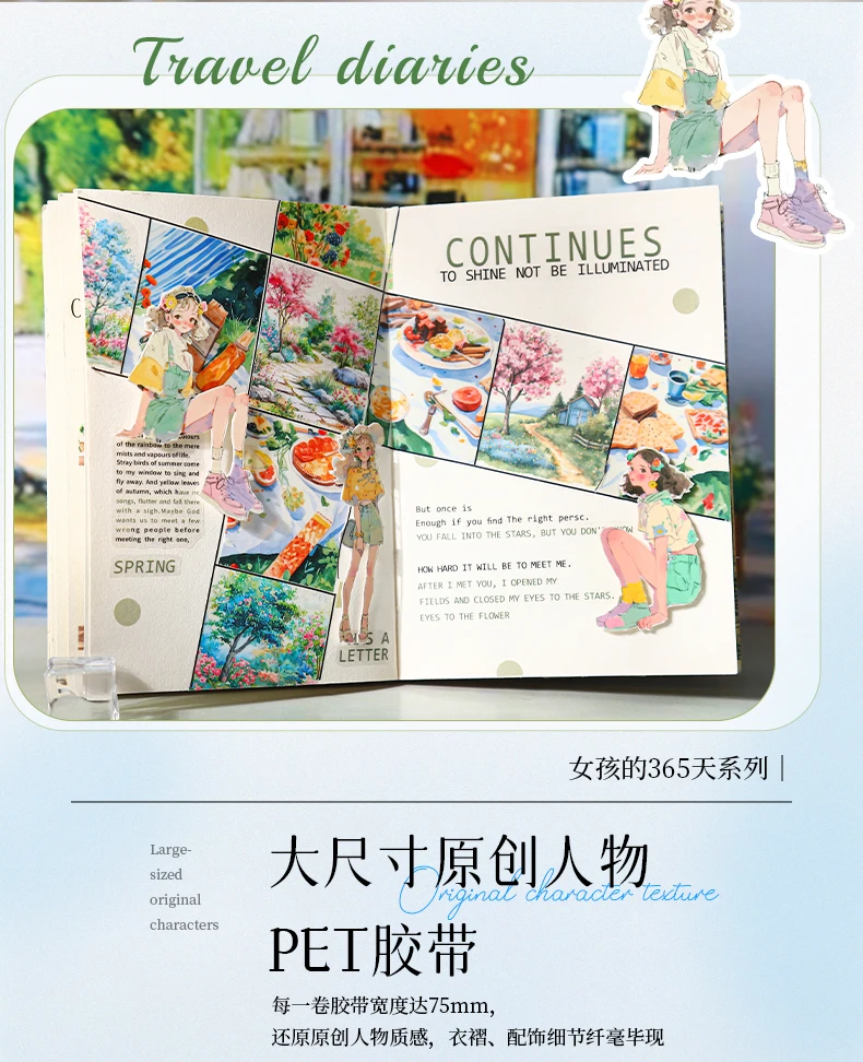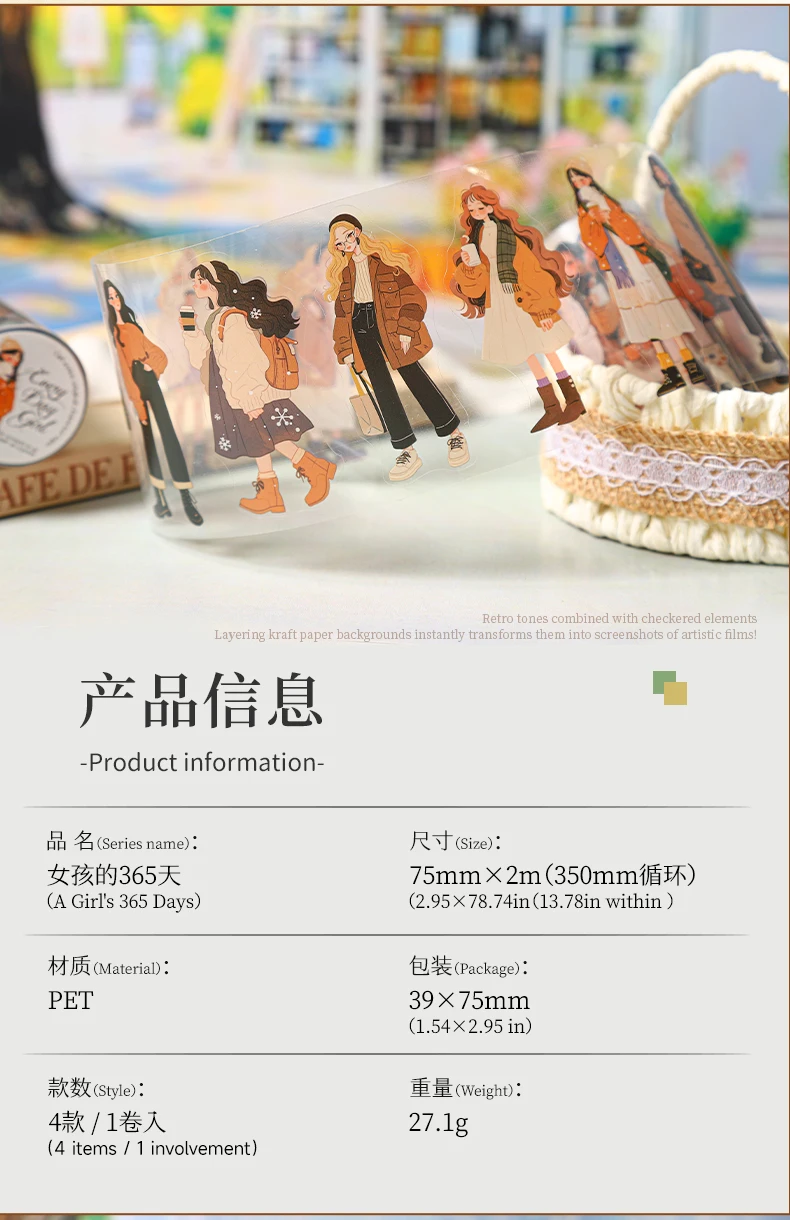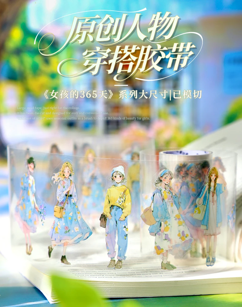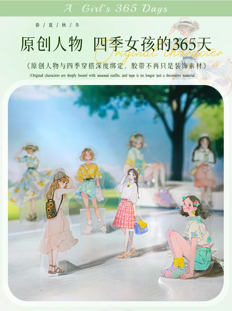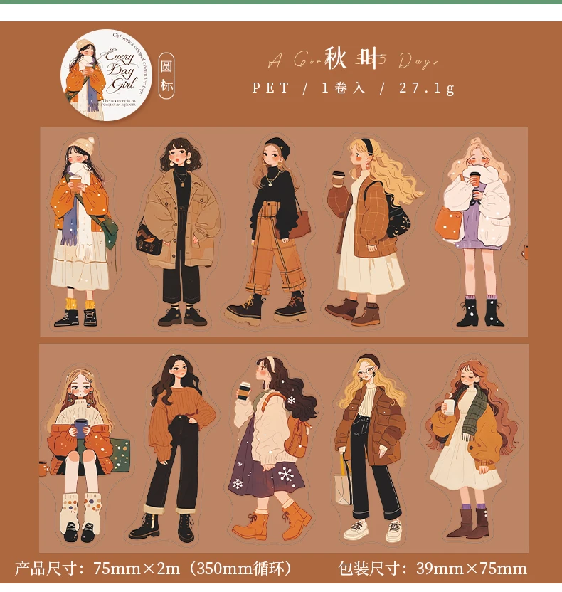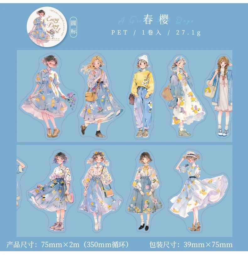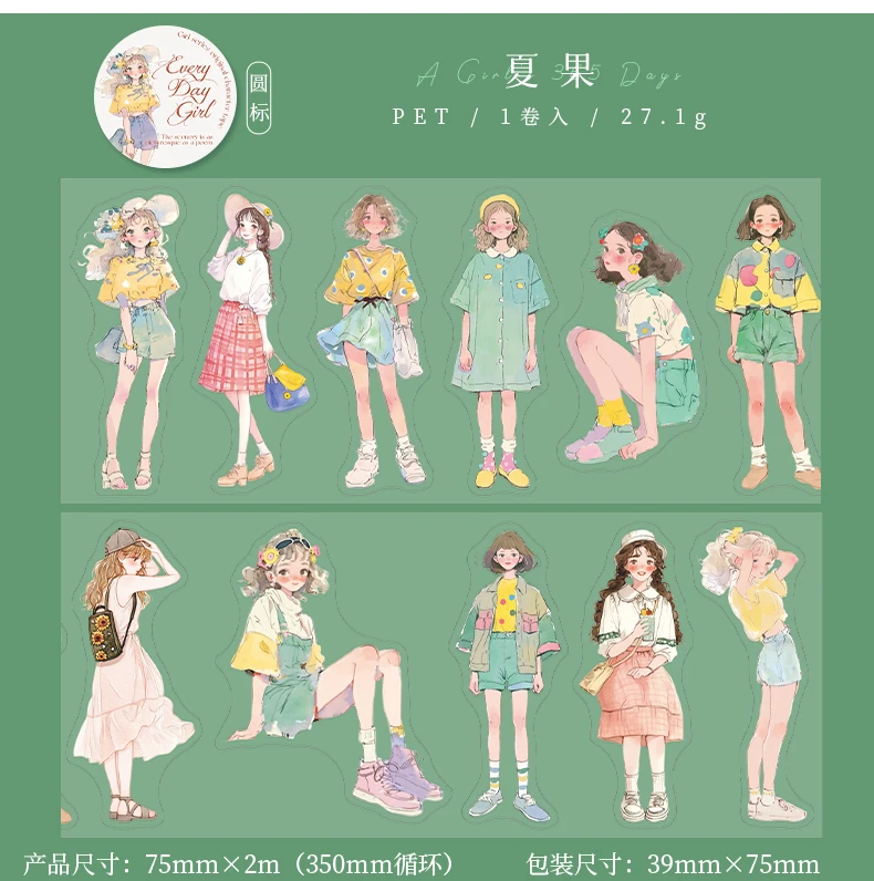 1 Roll Fashion Girl Stickers 4 Seasons Outfit DIY Scrapbook Journal Washi Tape For Phone Case Notebook Decoration Cute Stationer