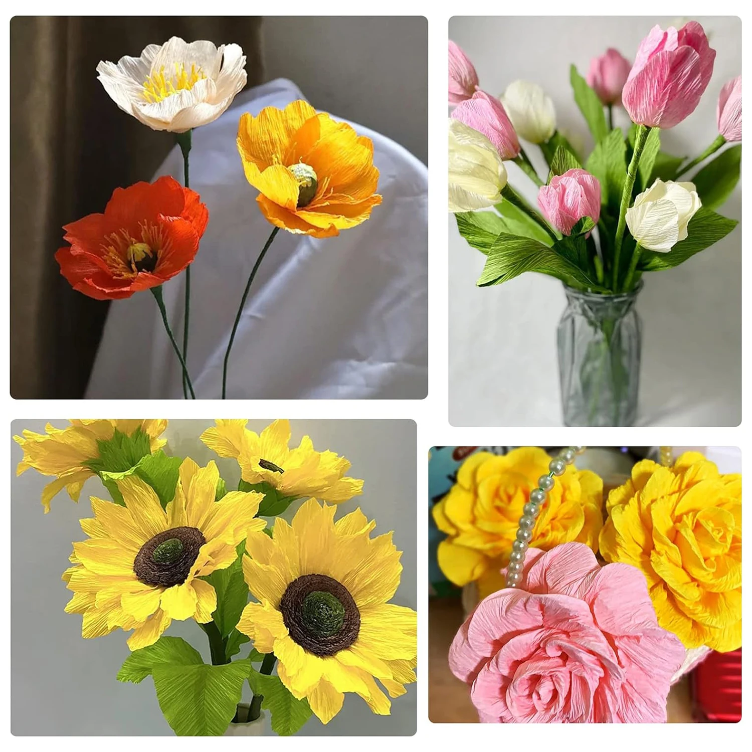 4.Craft project supplies: you can share the colorful crepe paper sheets with your children, friends, family, or anyone who likes handicrafts, to do craft projects with your children and friends to build a warm parent child relationship, friendship and help relieve stress.