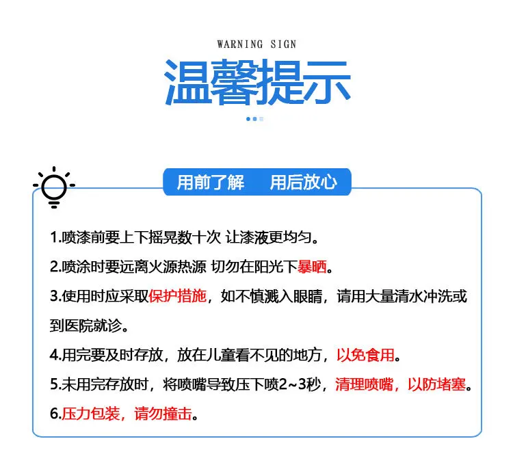2. Keep away from fire sources and heat sources when spraying and do not expose themselves to the sun.