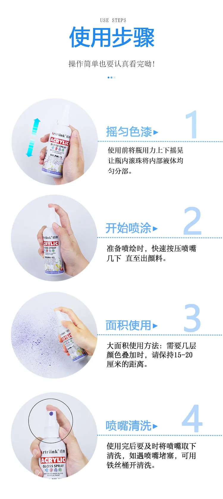 Large-area use method: When several layers of colors need to be superimposed, please keep a distance of 15-20 cm.