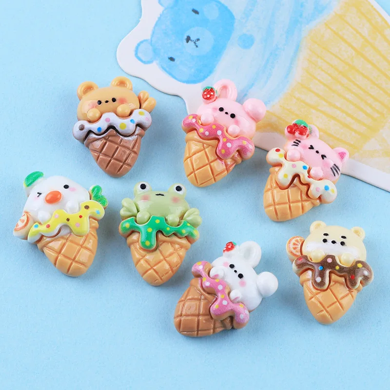 100Pcs Cartoon Mini Cute Bear Frog Ice Cream Flat Back Resin Cabochons Scrapbook Craft Diy Hair Bows Accessories Home Decor