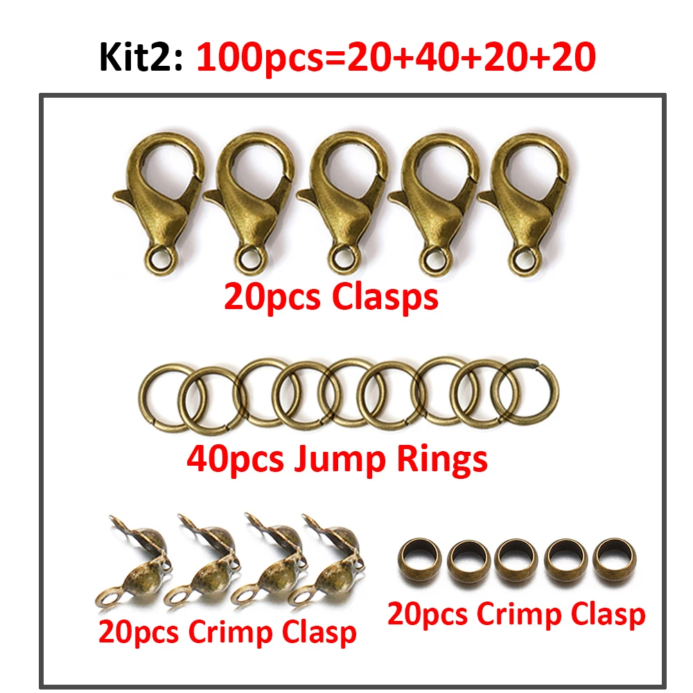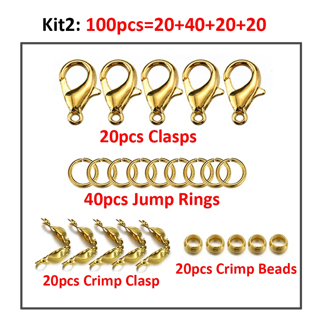100pcs Jewelry Making Kit Components Lobster Clasp Jump Rings Connector Crimp End Beads for DIY Bracelet Necklace Chains