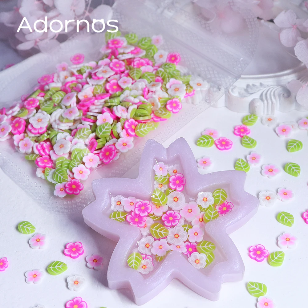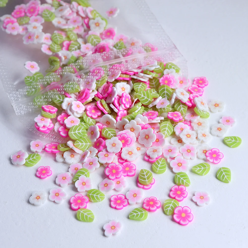10g Pink Flowers Polymer Clay Slices Epoxy Resin Filling Mixed Cherry Blossom Leaf Slime Flake Spring DIY Pendant Crafts Making