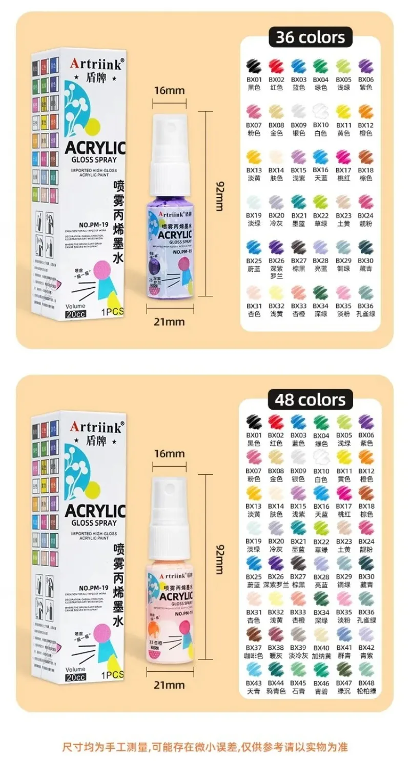 12/18/24/36/48-color Acrylic Spray Paint Waterproof UV-resistant DIY Clothing Recoloring Wall Painting Graffiti Self-spraying