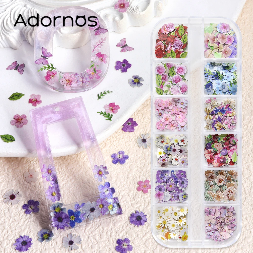 12 Grids Flower Wood Pulp Chips Epoxy Resin Filling Rose Iris Vetiver Flower Butterfly Shape Decorative Paper Flower DIY Crafts