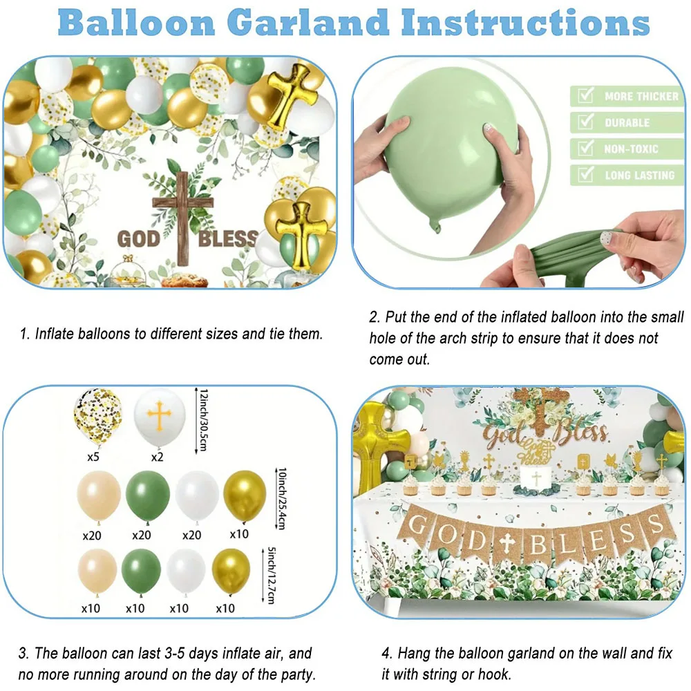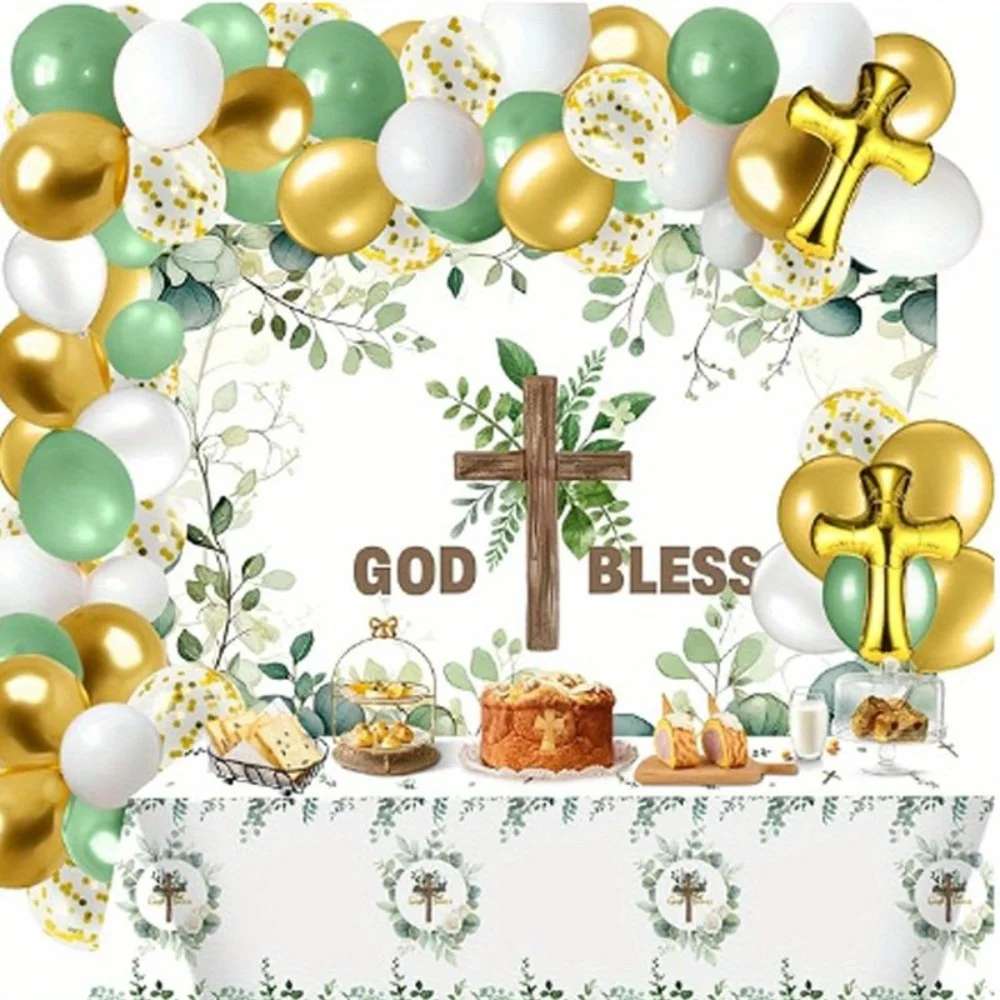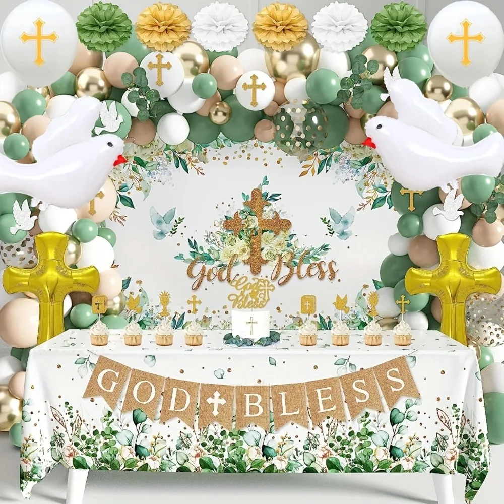 124 Pcs The First Balloon Set with A Communion Theme, Suitable for Baptism Parties Birthday Anniversaries Spring and Summer