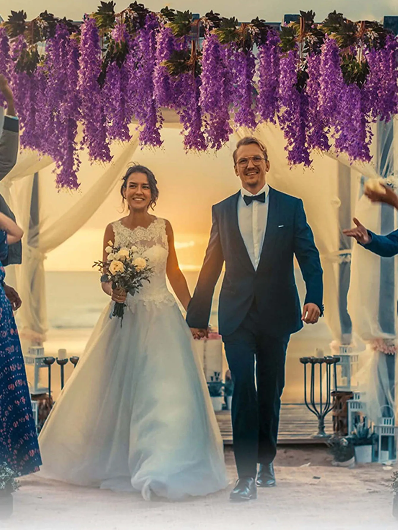 -Package Included:12 x artificial flowers vines.Size of each fake flower vine: About 3.6 Feet in length per artificial wisteria with 3 branches,more flower in each string, extra thick and beautiful.