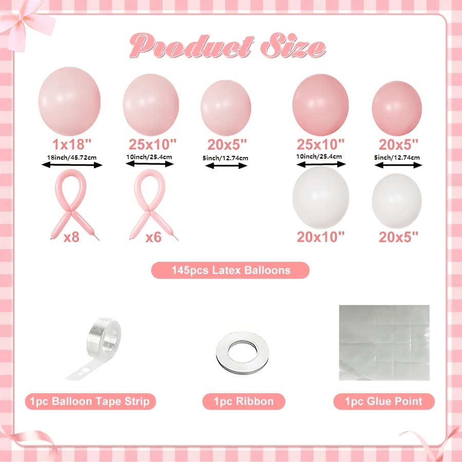 [145pcs Pink Bow Balloon Arch Kit] 145pcs, Etiquette Birthday Decoration Etiquette Bow Pink and White Balloon Arch Kit, Including Bow Balloon Light Pink White Bow Balloon, Used for Pink Bow Birthday Party