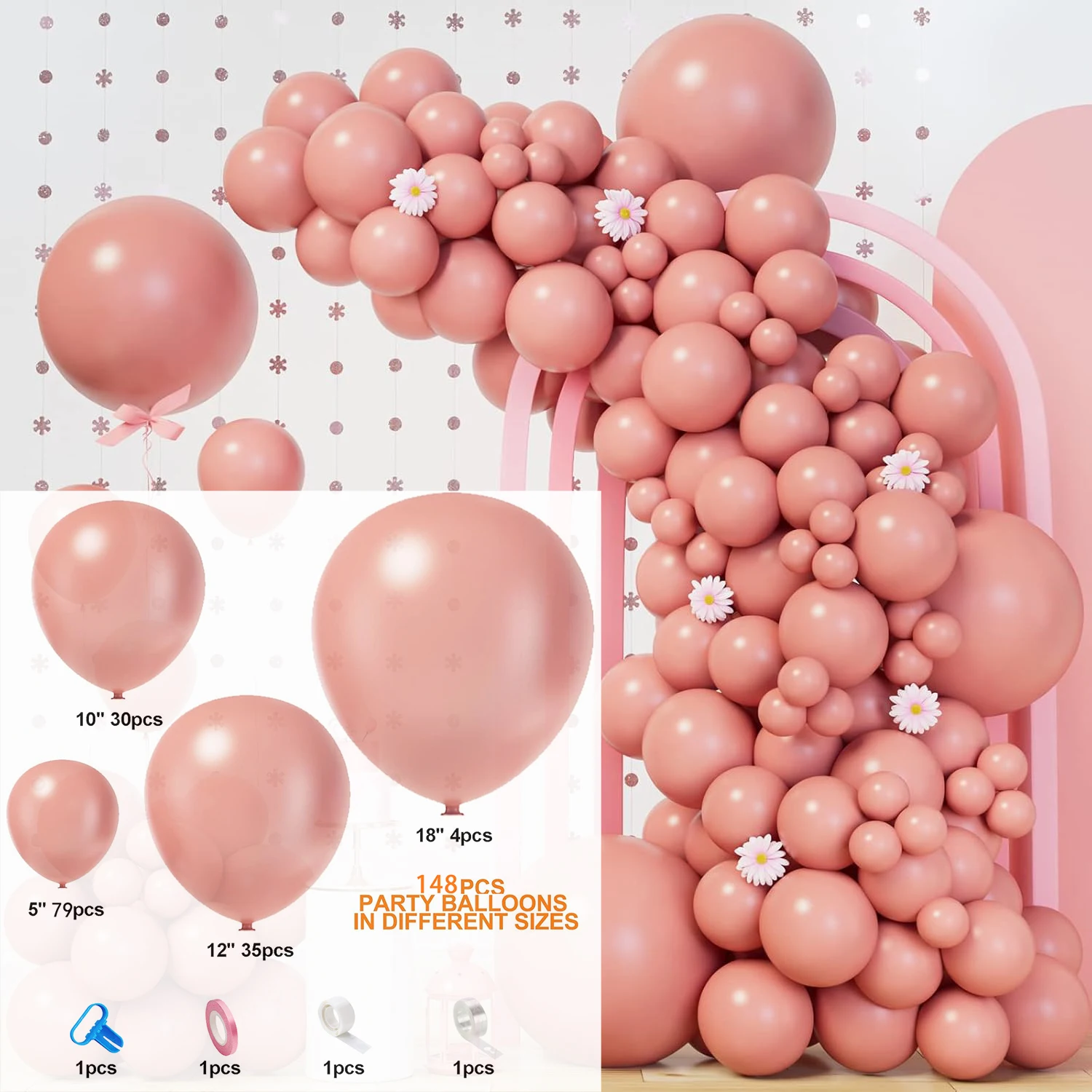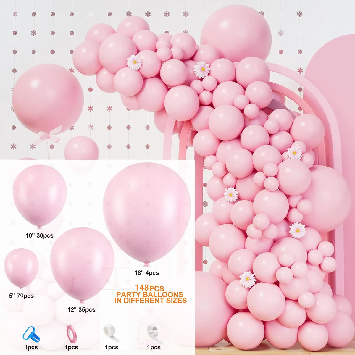 148Pcs Pastel Pink Balloons Baby Pink Balloon Garland Arch Kit Baby Shower Birthday Wedding Valentine's Day Party Decorations