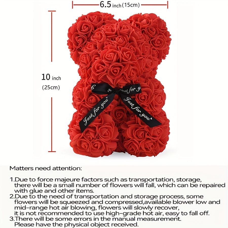 1pc, Artificial Rose Bear 9.84inch Artificial Foam Flower Terry Bear, Rose Bear Gifts For Mother Grandmother On Mother's Day, Perfect Gift For Valentine's Day, Anniversary, Wedding, Creative Gift For Birthday Christmas