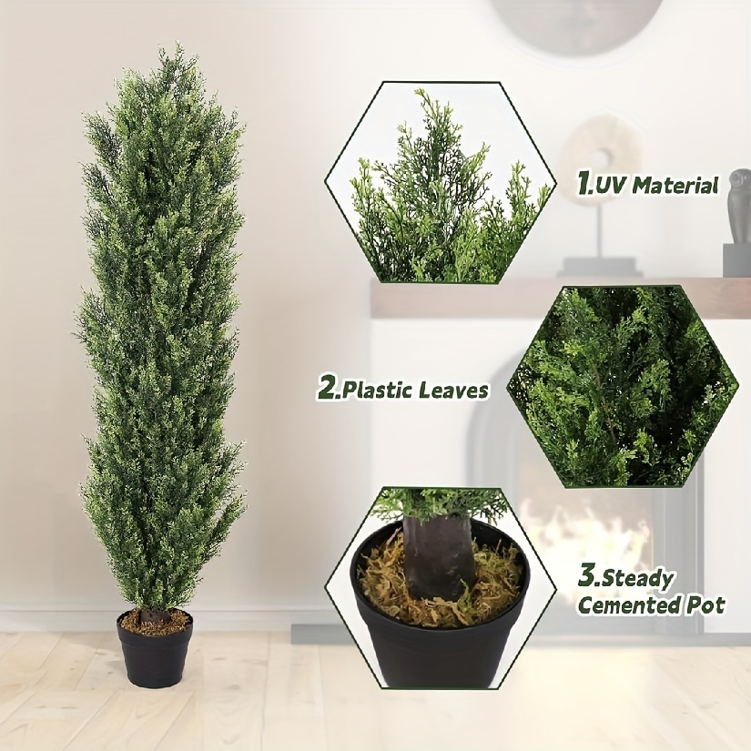 2pcs,, Simulation Cedar Tree, 5ft Tall Artificial Plant Tree, Simulation Plant, Premium Plastic Material, Home Decoration, Suitable For Yard, Living Room, Front Room, Doorway, Christmas Decoration