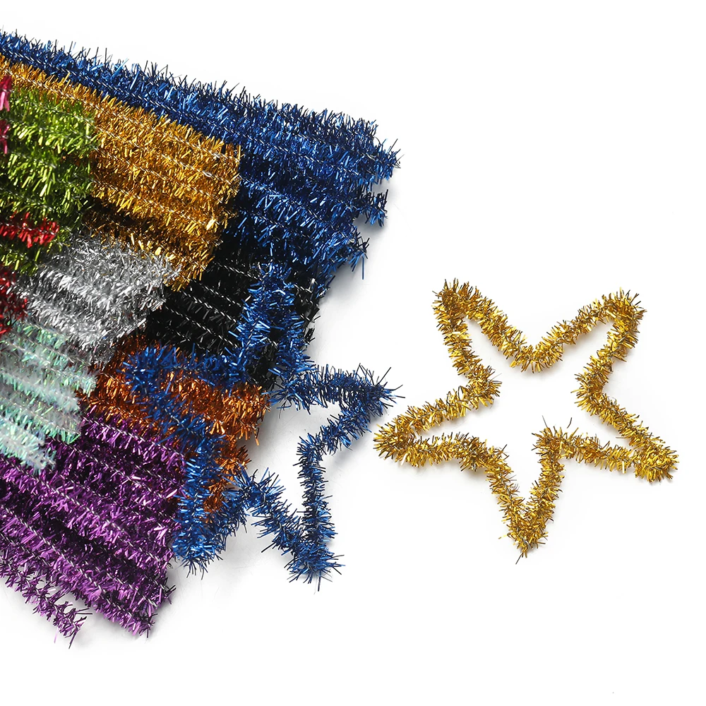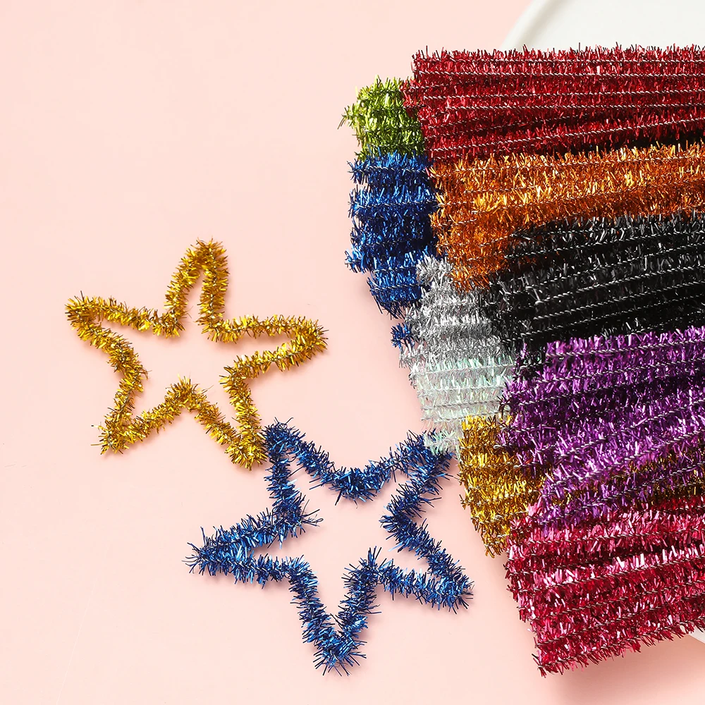 30cm 100pcs Glitter Chenille Stems Pipe Cleaners Plush Stems Wired Sticks Kids Educational DIY Christmas Craft Jewelry Making
