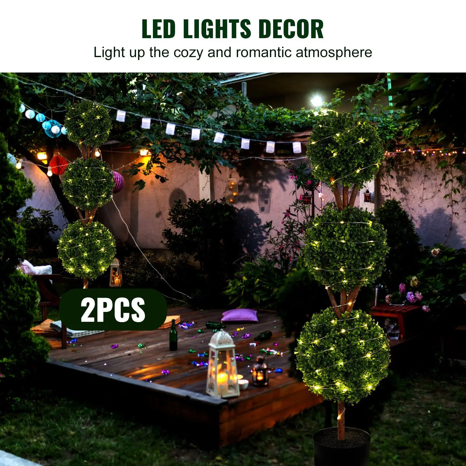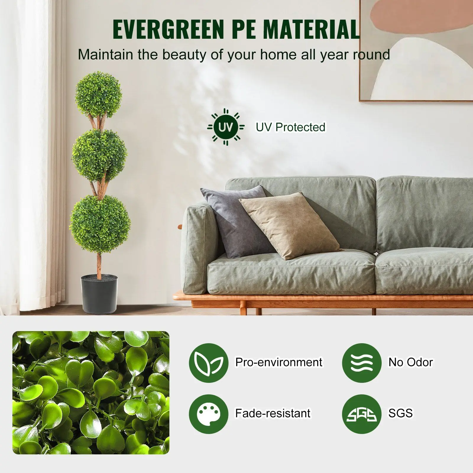 48 Inch Tall Artificial landscape tree bonsai 3 Ball-Shaped Faux Plants in Plastic Planters Green 2 Pieces Shipping from the USA