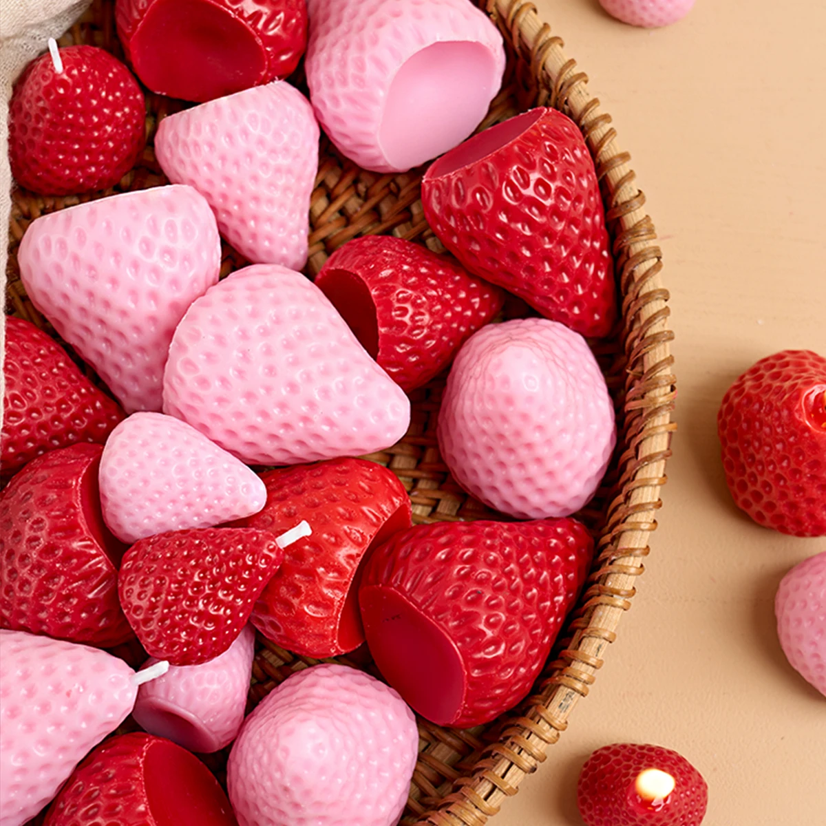 4Pcs Strawberry Shaped Silicone Candle Mold DIY Handmade Fruit Scented Candles Soap Craft Casting Molds Home Valentine's Day Dec