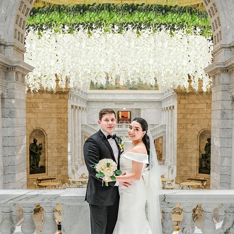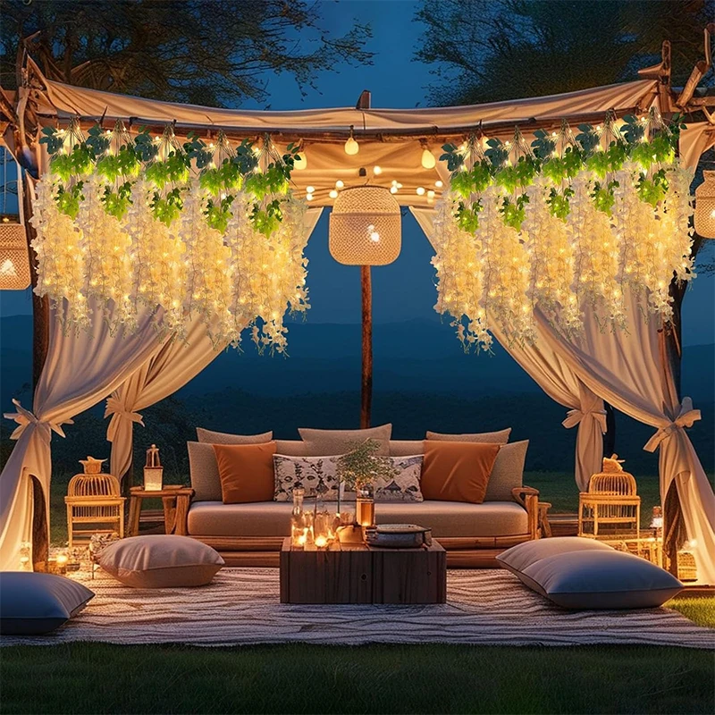5/10Pcs 110cm Artificial Hanging Flower White Silk Wisteria Vine with Lights Garland for Aesthetic Room Party Garden Home Decor