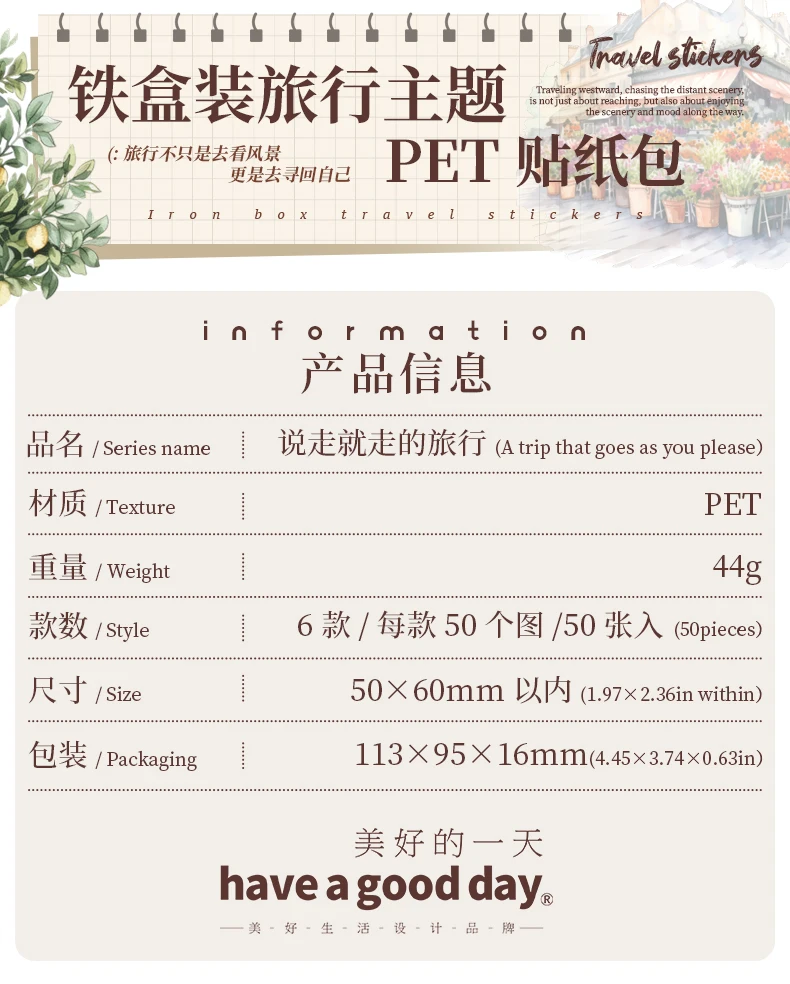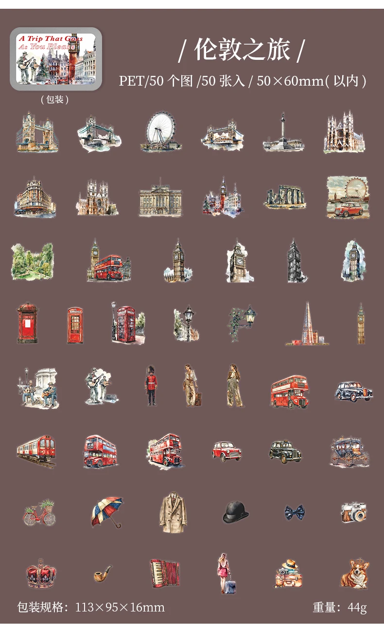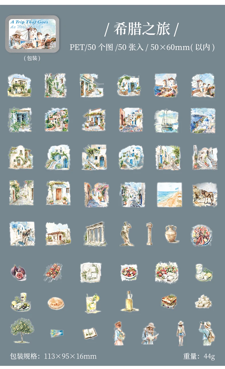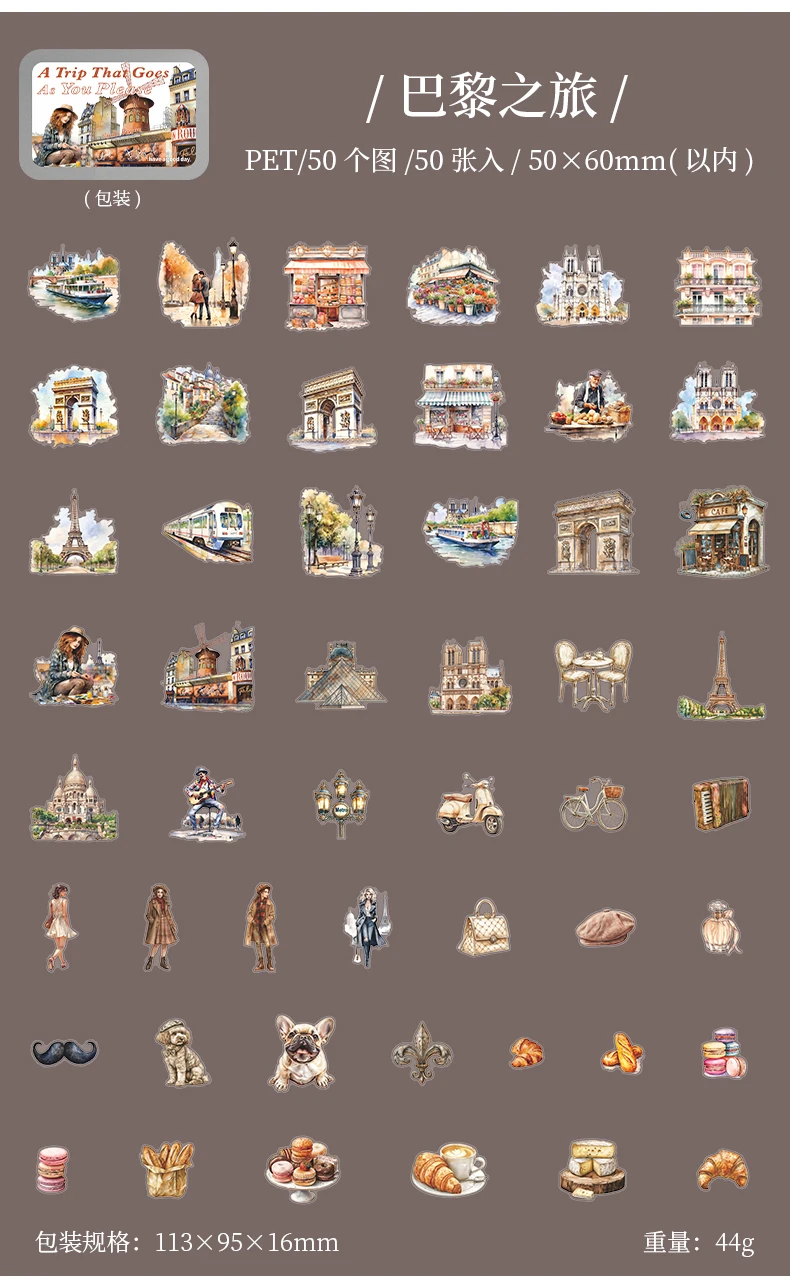 50pcs,Travel Scenery Themed Stickers Pack, Scrapbook Stickers,Perfect for Notebook Phone Case Diary Deco,Stationery Supplies