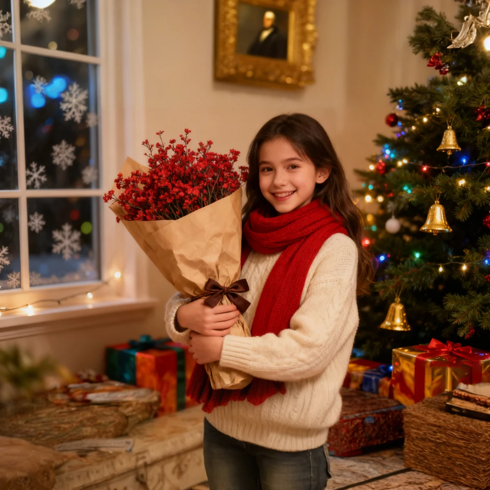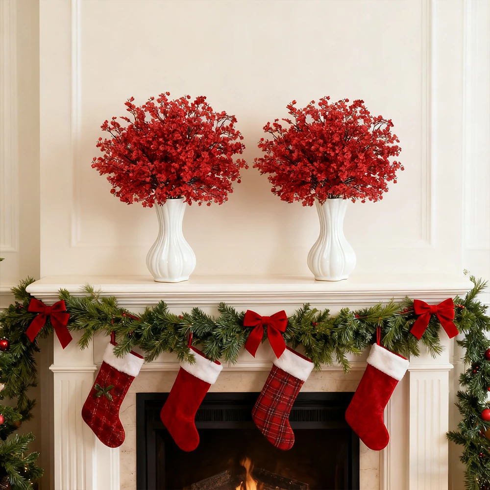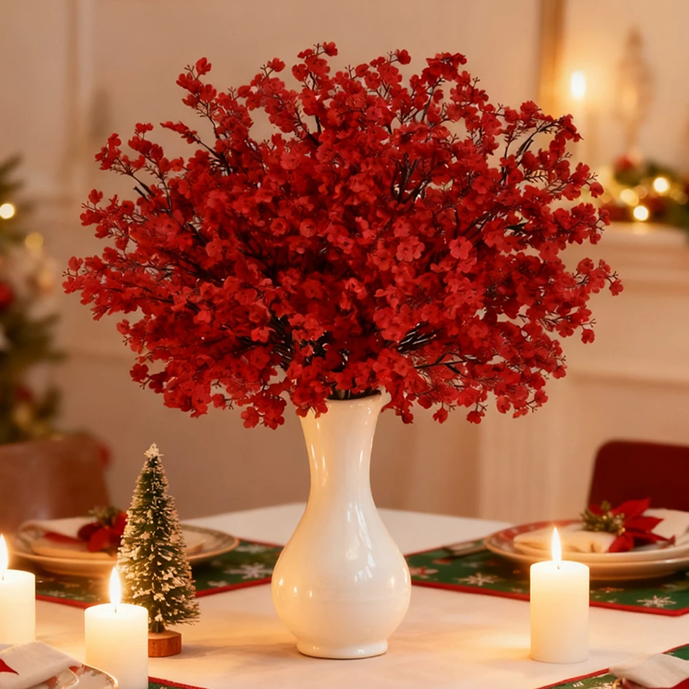 5Pcs Red Babys Breath Artificial Flowers Fake Gypsophila Bouquets for Home Wedding Table New Year Party Christmas Decorations