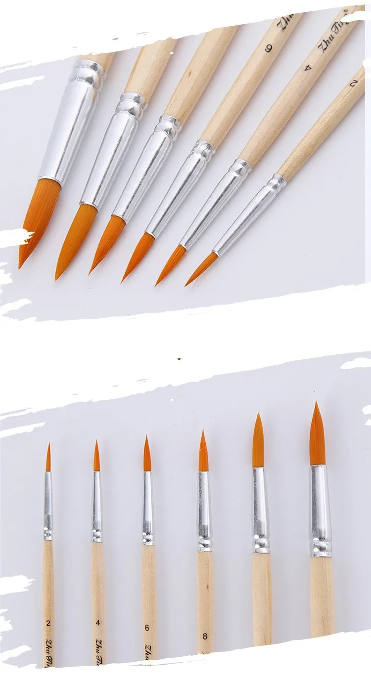6Pcs nylon art brush Gouache Paint Brushes Watercolor Painting Brushes for artist