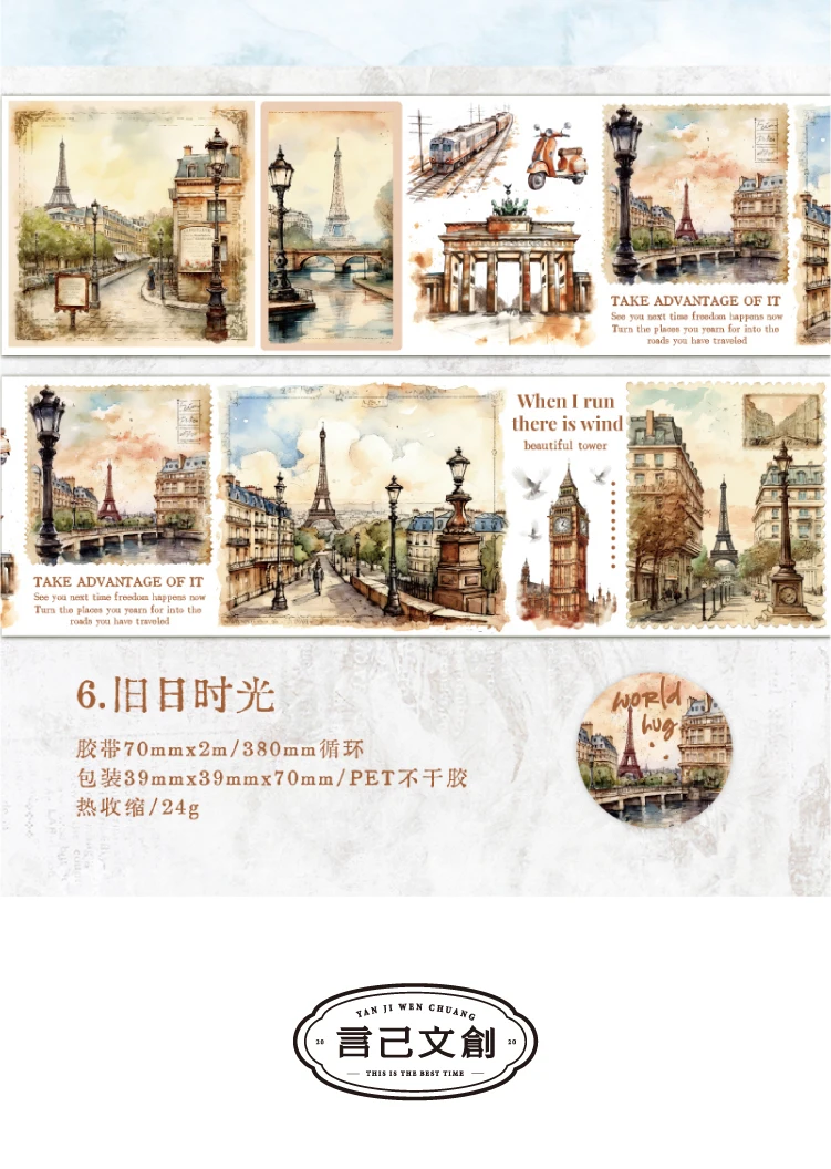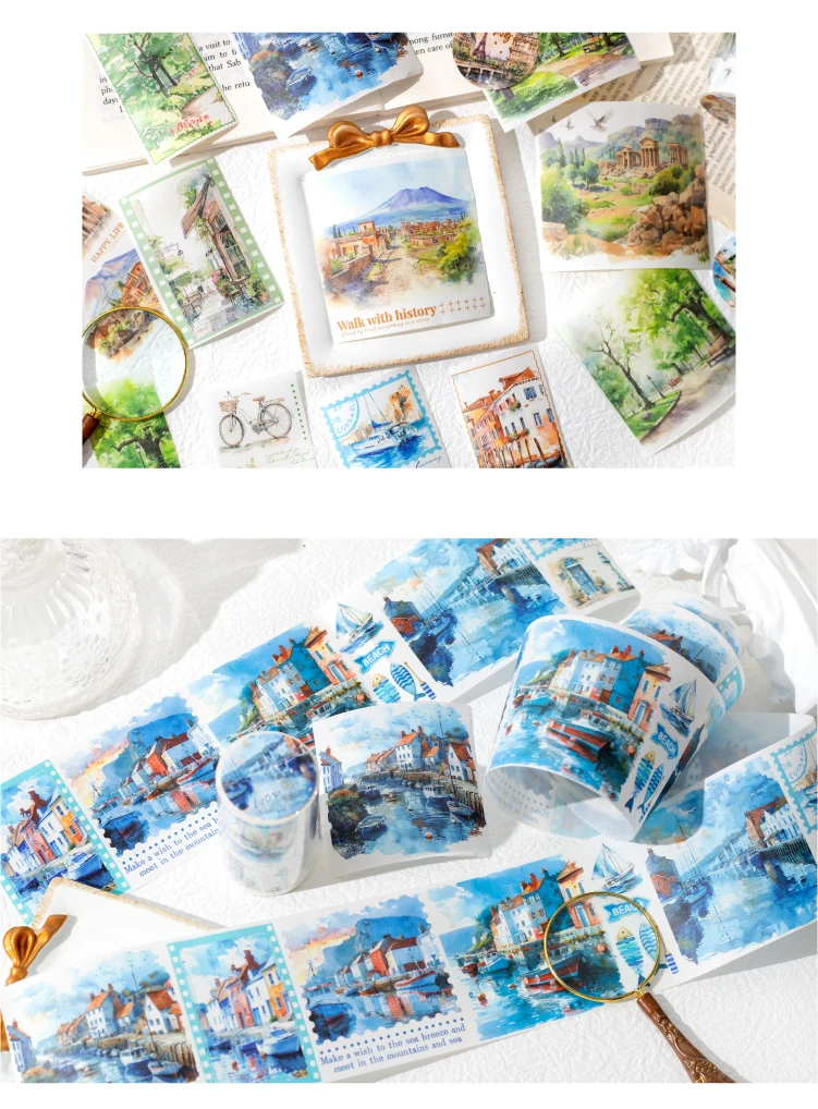 6style 7*200cm Travelling The World Buildings Washi Tape DIY Scrapbooking Collage Junk Journal Sticker Label Masking Tape