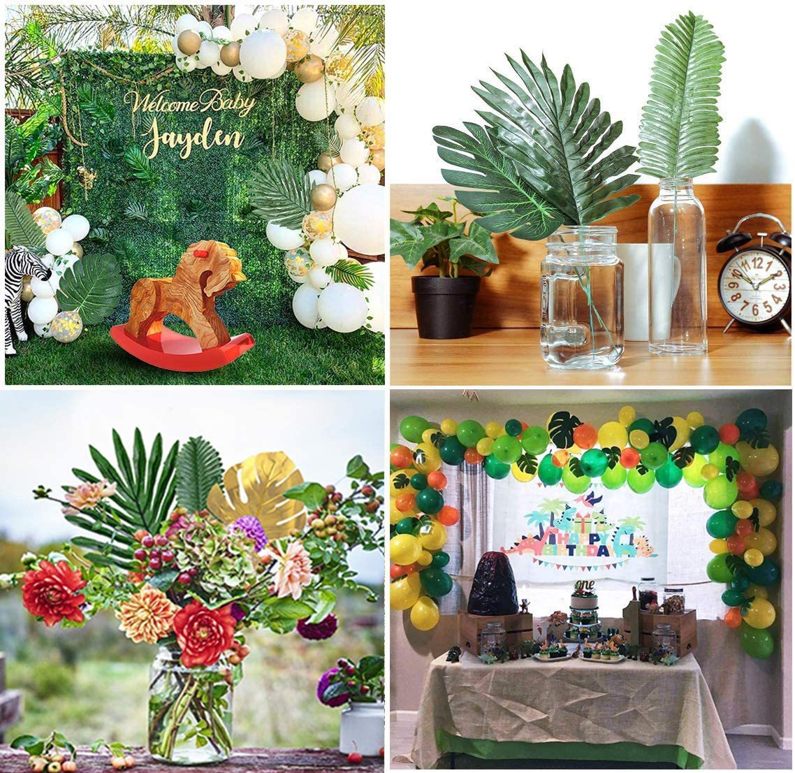 WIDELY DIY USED:The tropical leaves are suitable for birthdays, weddings, Hawaii, jungles, tropical rain forests, baby parties, luau party, tropical party, Safari Party, Beach Theme,TIKI Parties. Also can put on the vases, dining tables, dining chairs, table runners for decoration. They will show you how creative and refreshing they can be, beautiful and elegant, create an authentic tropical island atmosphere.
