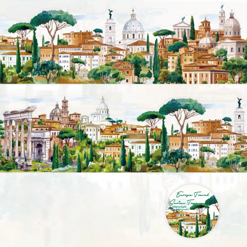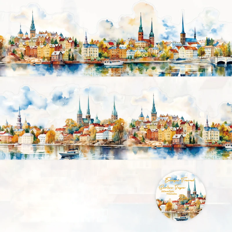 75mm x 2m Washi Tape Europe Travel PET Scenic DIY Scrapbooking Journal Planner Stickers for Phone Case Notebook Decoration