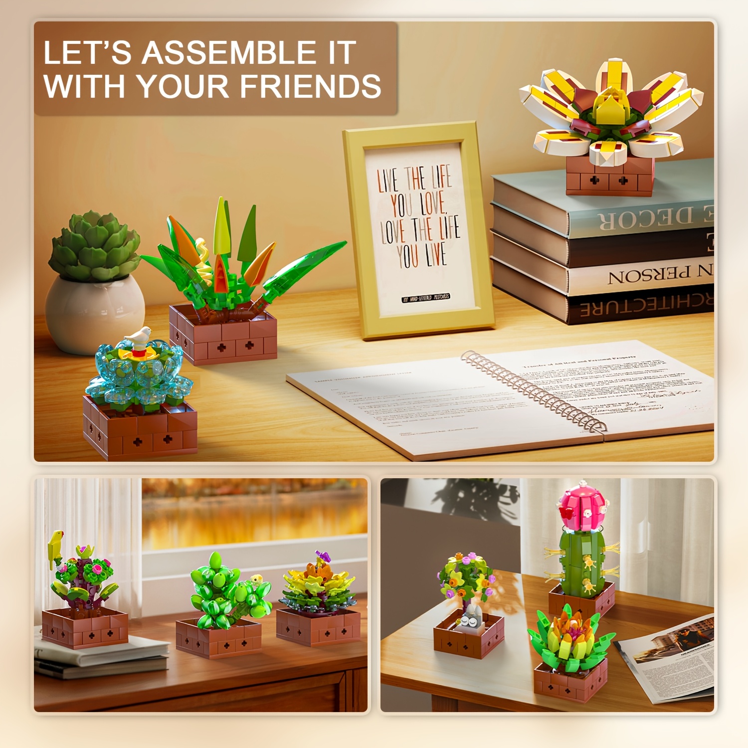 9 Succulents Plants Building Set, Flowers Botanical Collection Bonsai Artificial Plant Set Building Blocks Toy for Home House Decor Birthday Housewarming Gift for Adults Women