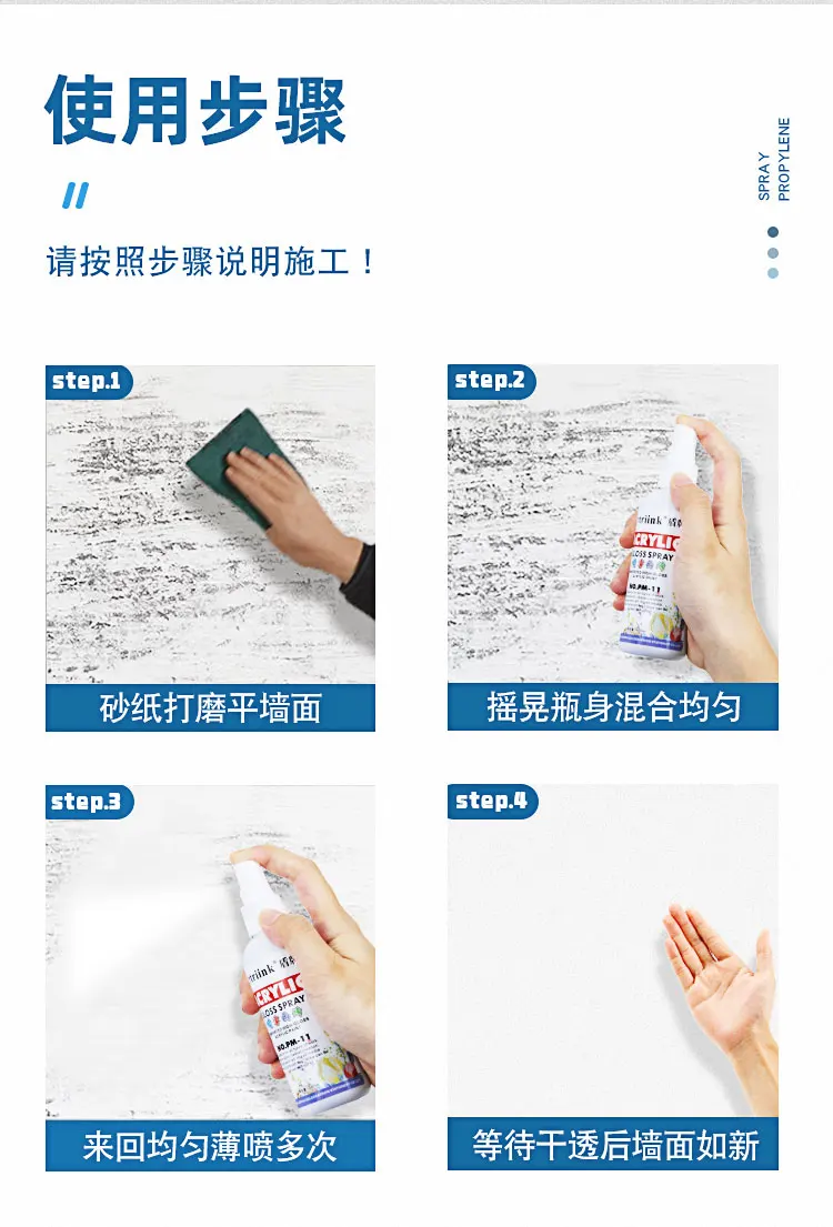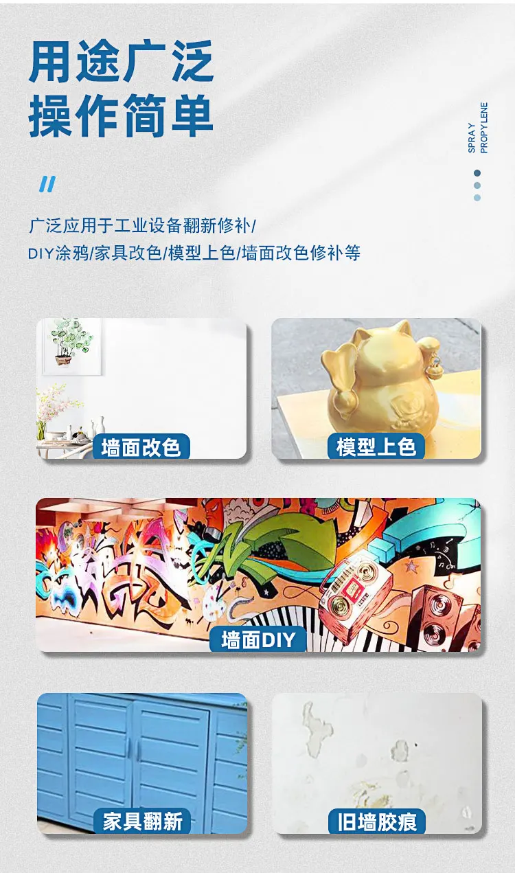 Scope of application: DIY wall graffiti, color fading and repainting, wood, wall dirt, etc
