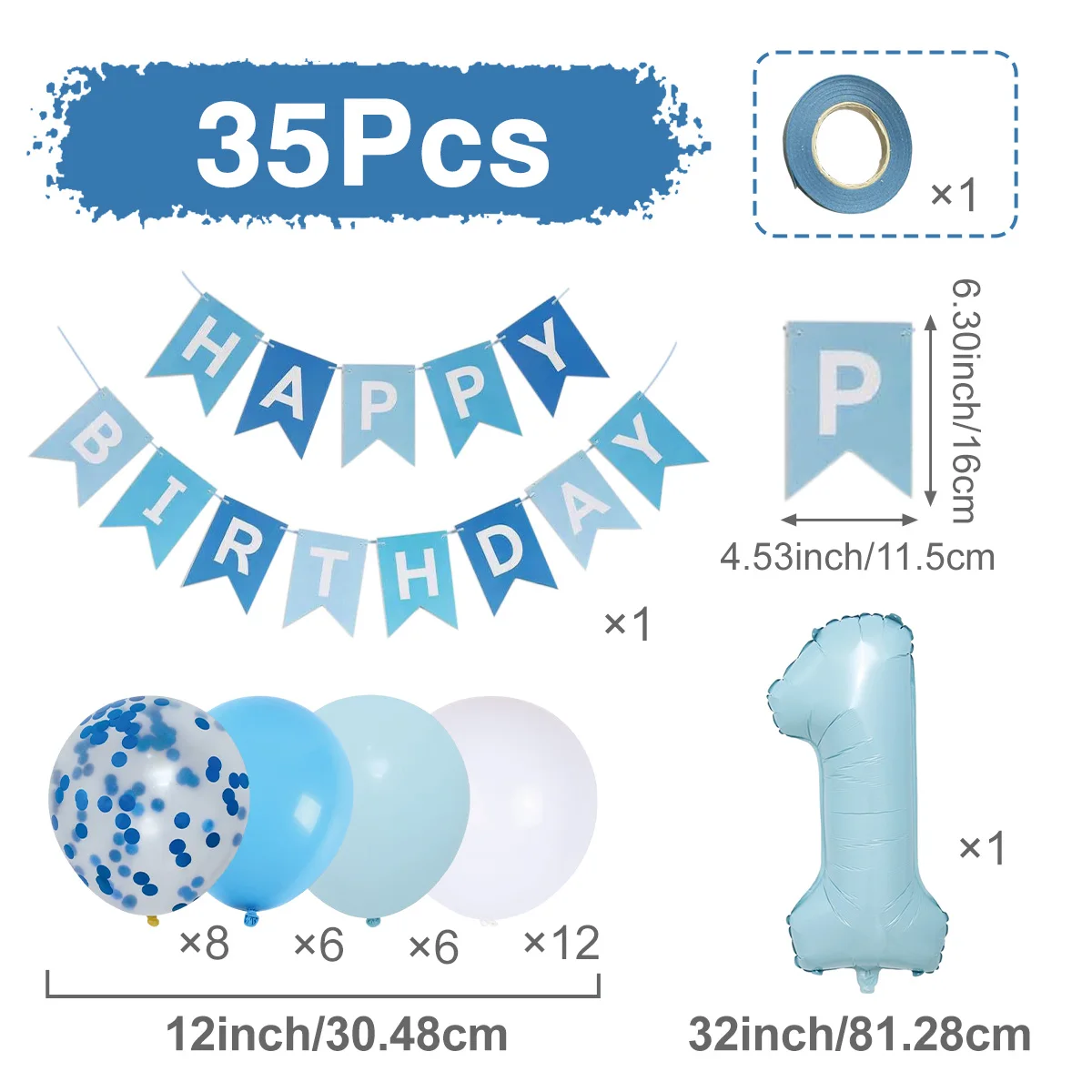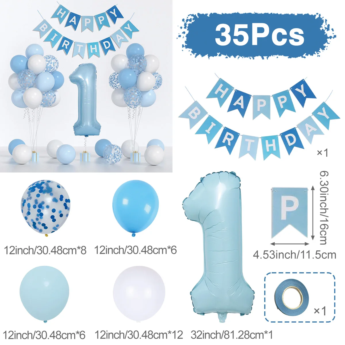 Blue 1 year old Balloon Happy 1st Birthday Party Decor Kids Girls Birthday Party Favors Gift Supplies Baby Shower Latex Balloons
