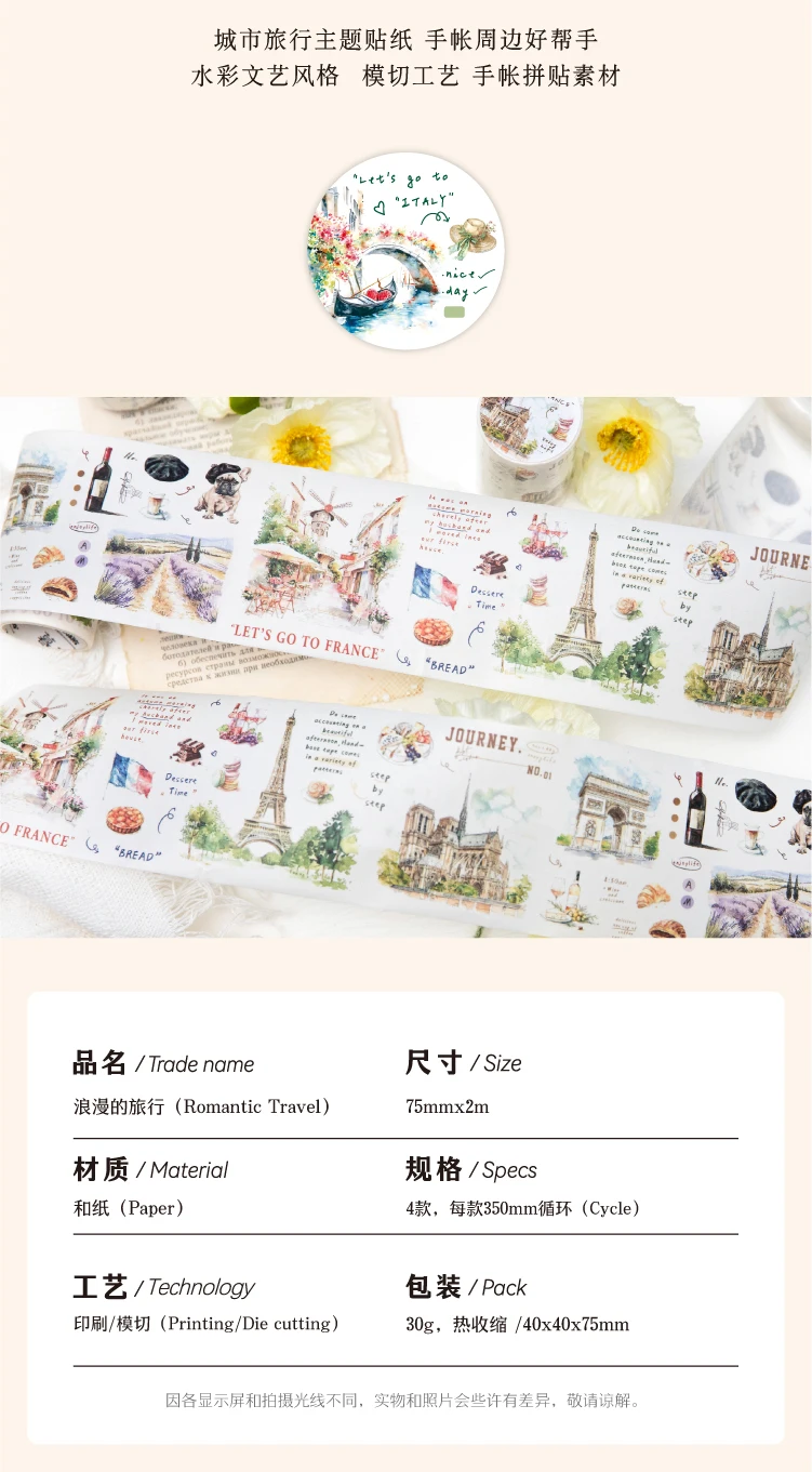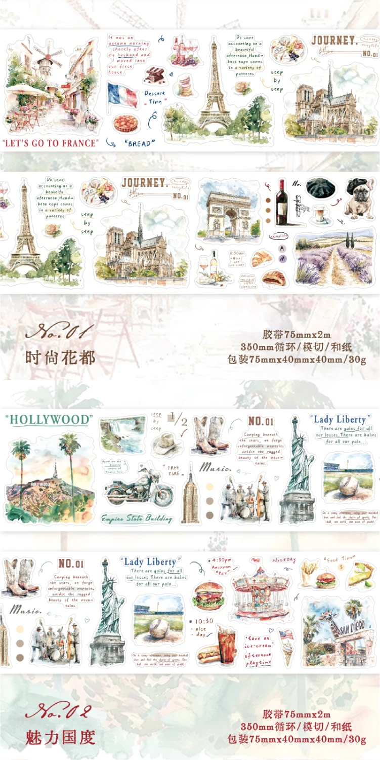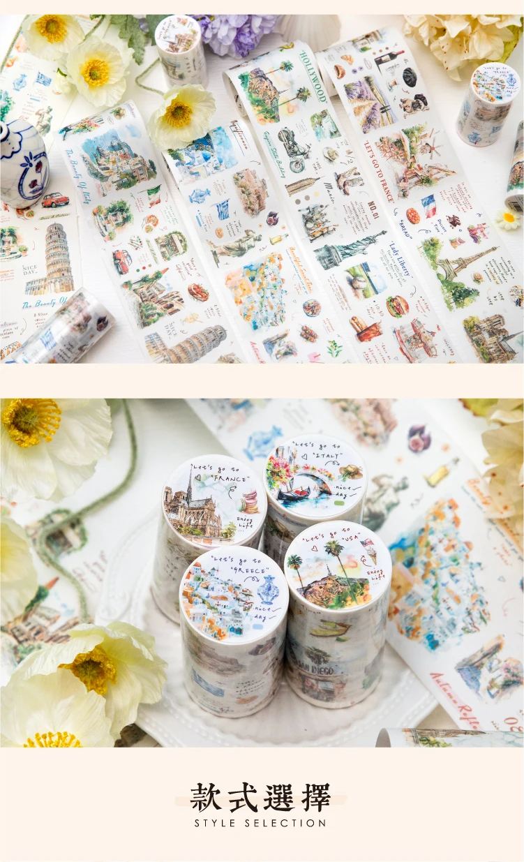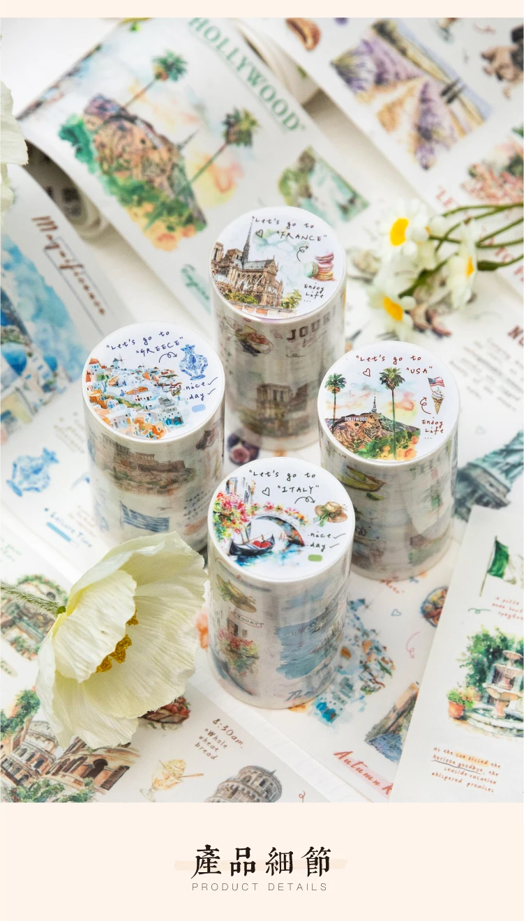 Journal GO 7.5x200cm Decorative Adhesive Washi Tape Romantic Travel Junk Journal DIY Masking Tape Scrapbooking Stickers