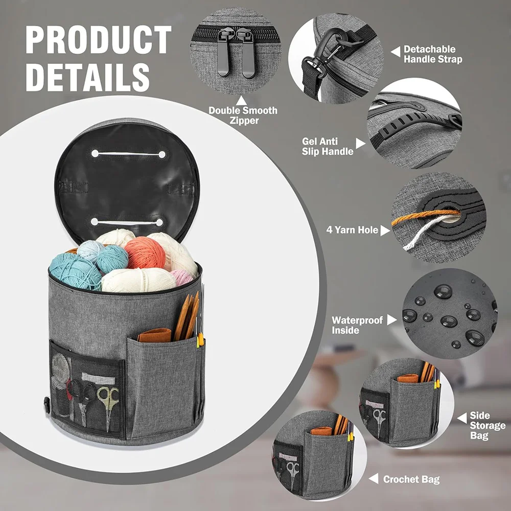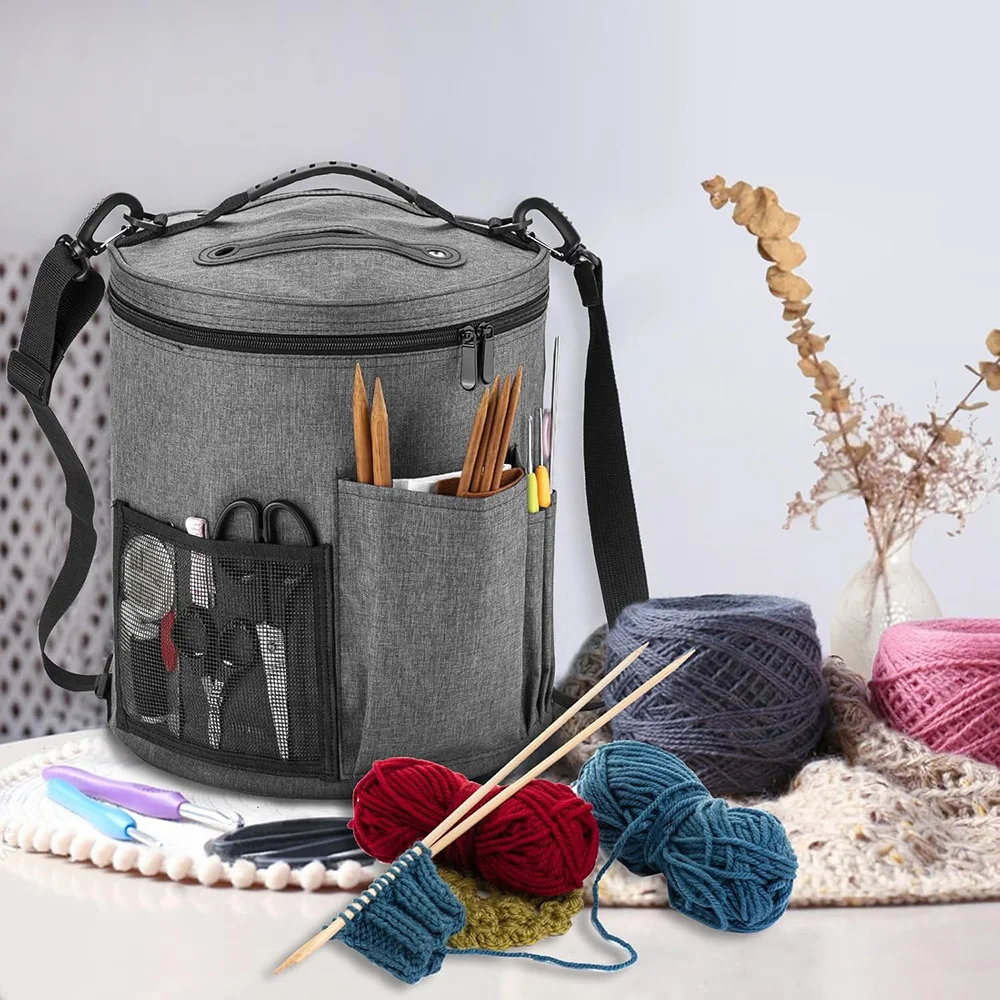 Large Capacity Crochet Bag Portable Yarn Organizer Knitting Tote Storage Bag with Shoulder Strap for Yarn, Hooks, Needles