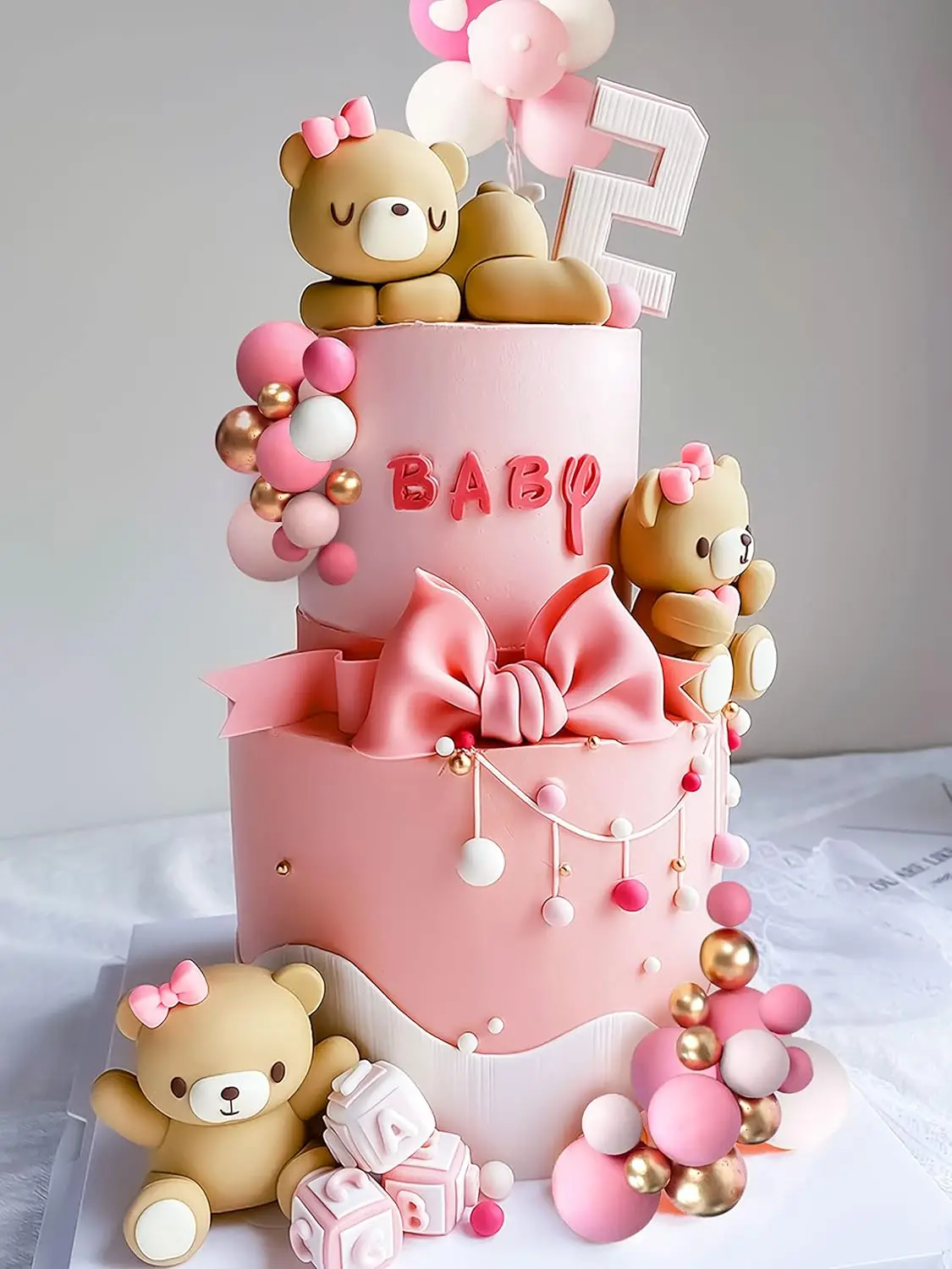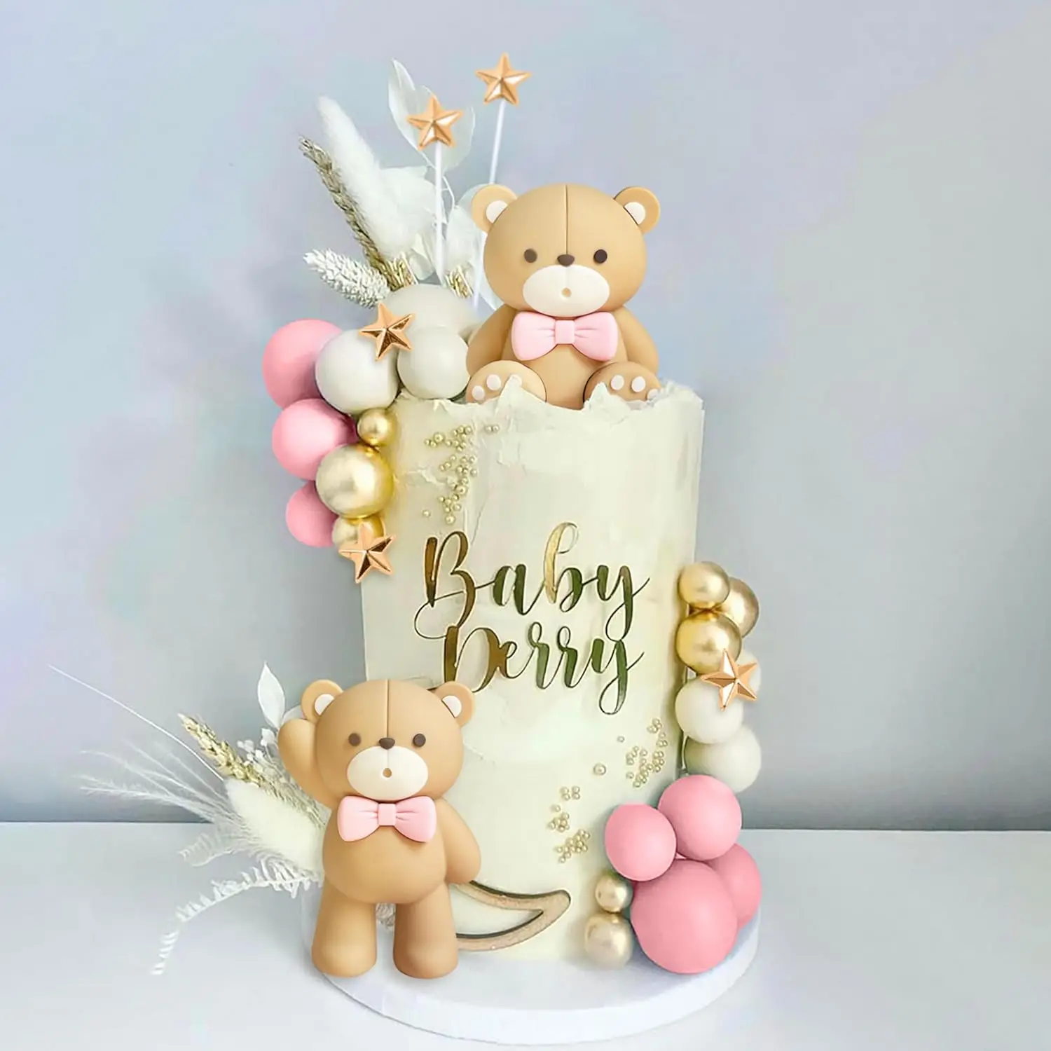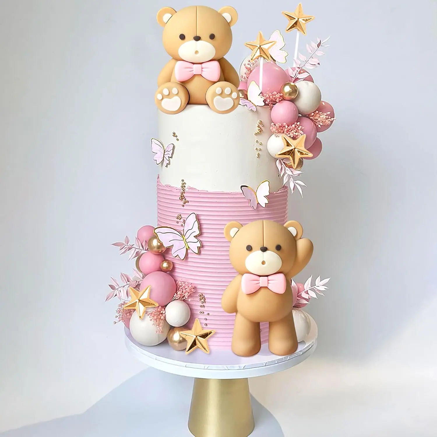 Luxury Teddy Bear Cake Decoration Bear Birthday Cake Topper With Bow for Baby Shower Girl's Birthday Party Supplies