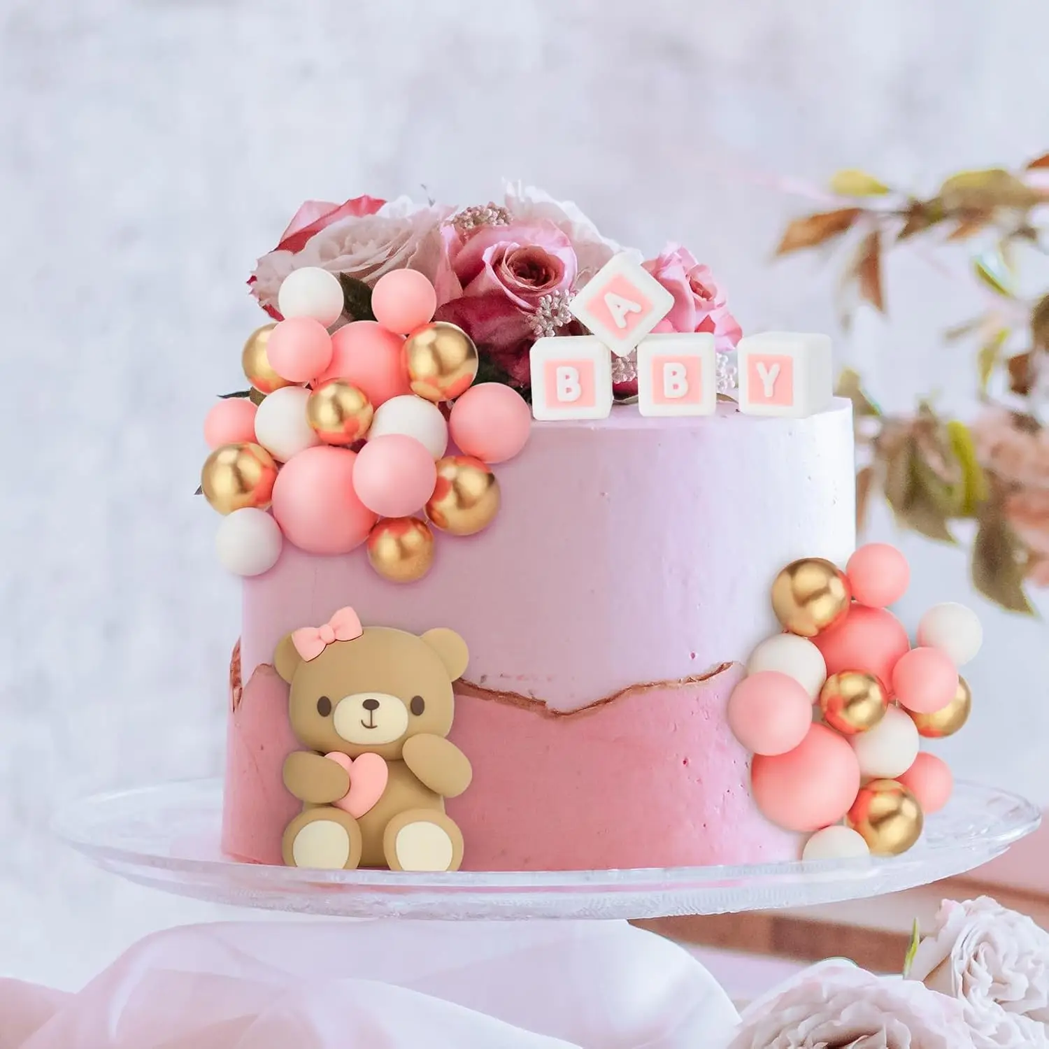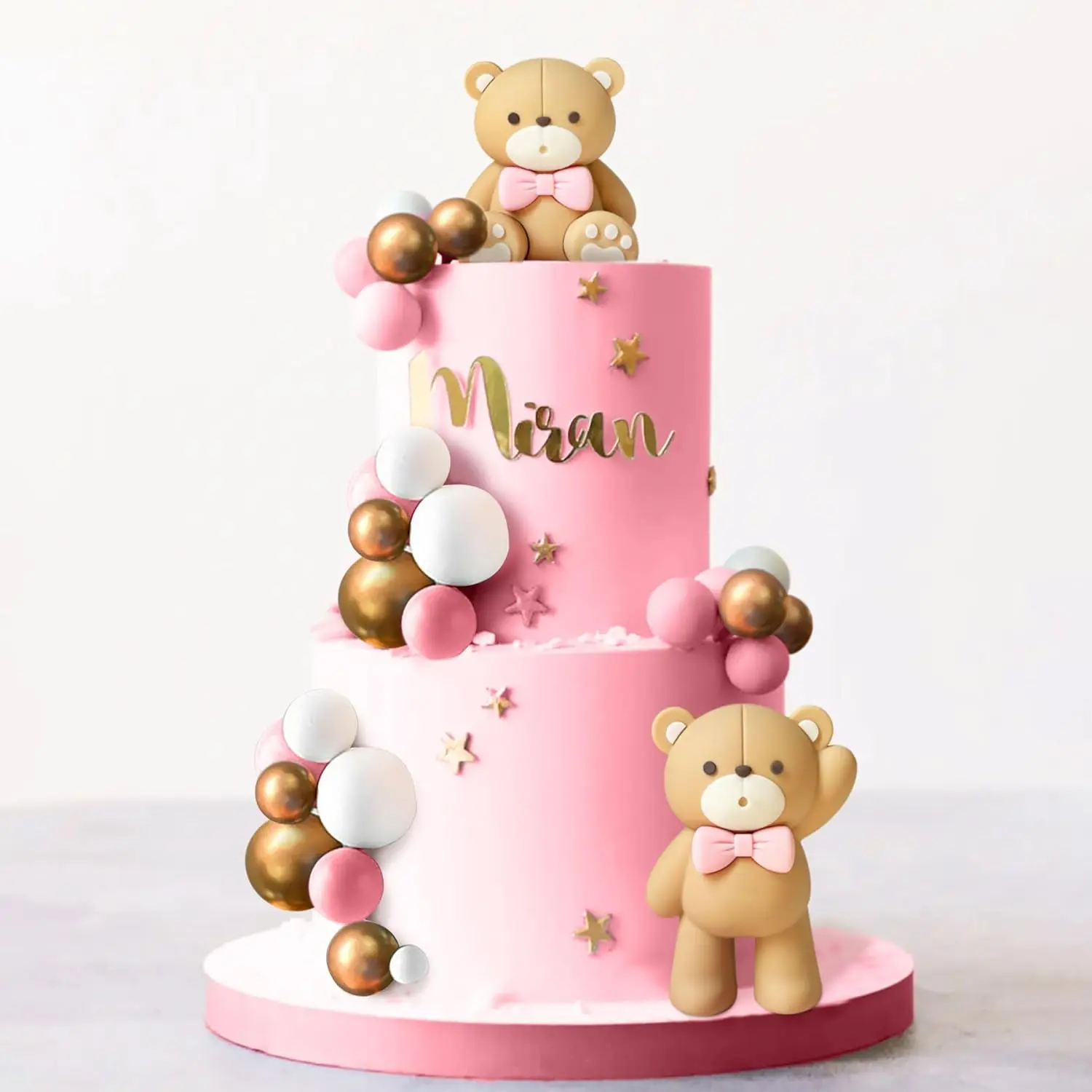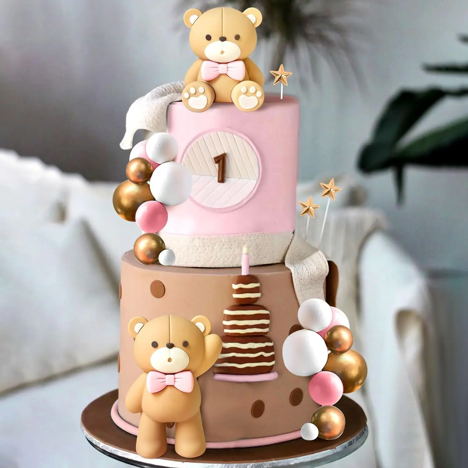 Luxury Teddy Bear Cake Decoration Bear Birthday Cake Topper With Bow for Baby Shower Girl's Birthday Party Supplies