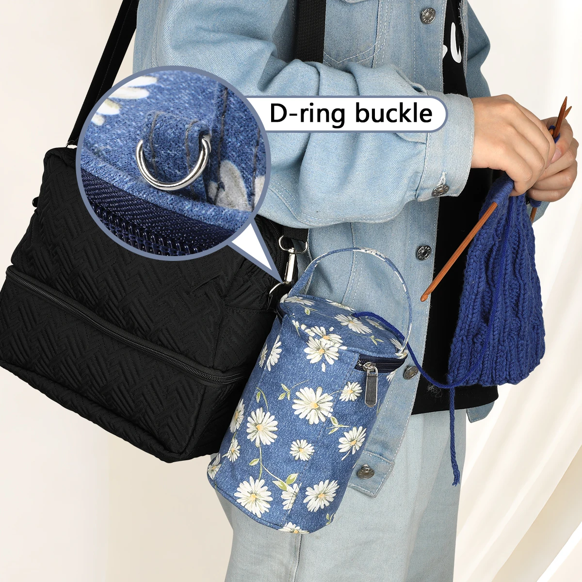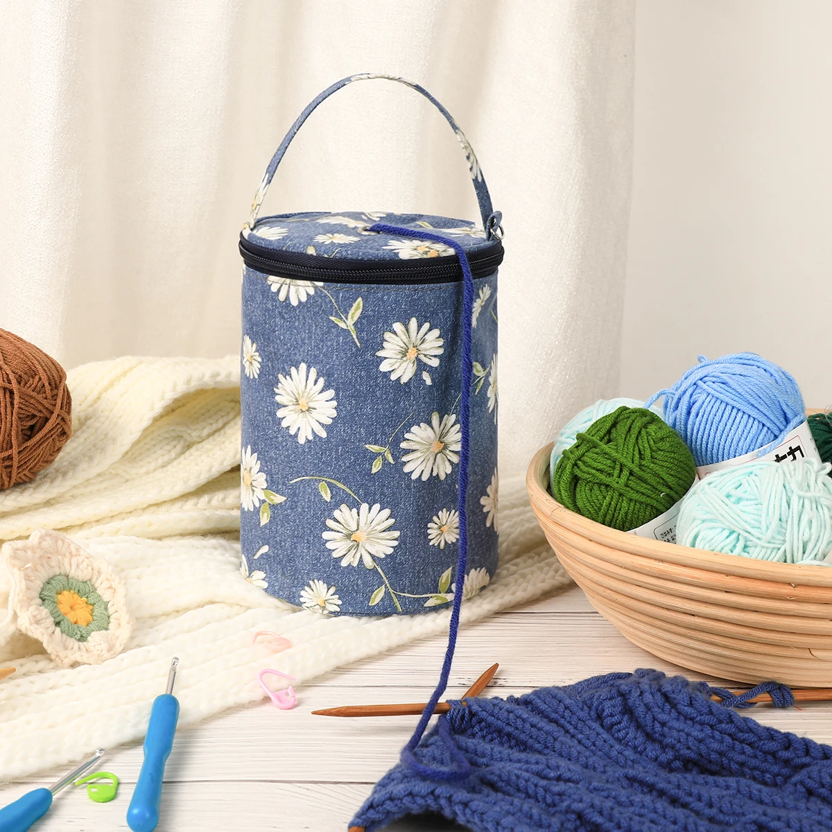 Portable Round Yarn Storage Bags Knitting Wool Yarn Bags Organizer Waterproof Crochet Hooks Bag for Sewing Accessories Tools