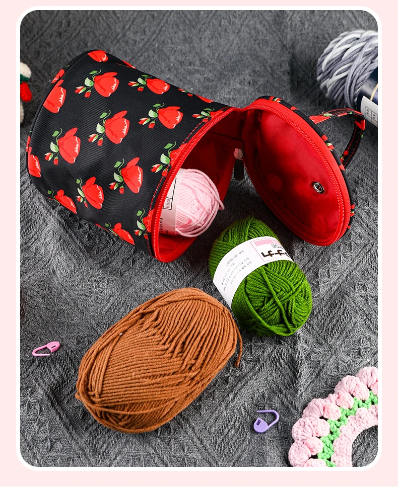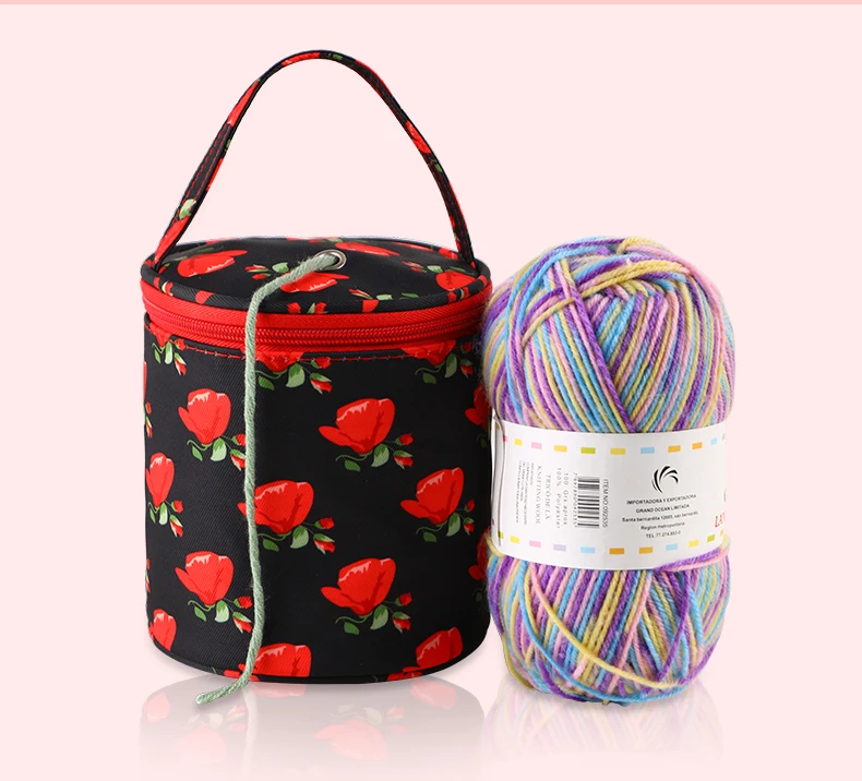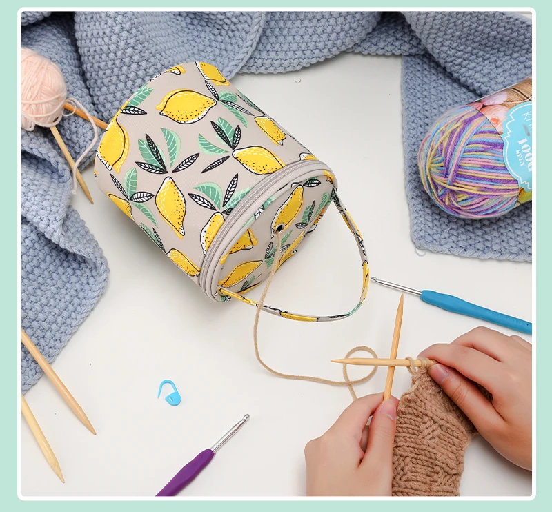 Round Yarn Handheld Storage Bag Portable Knitting Bag with Thread Hole DIY Yarn Sewing Tools Organize Crochet Hook Storage Bag