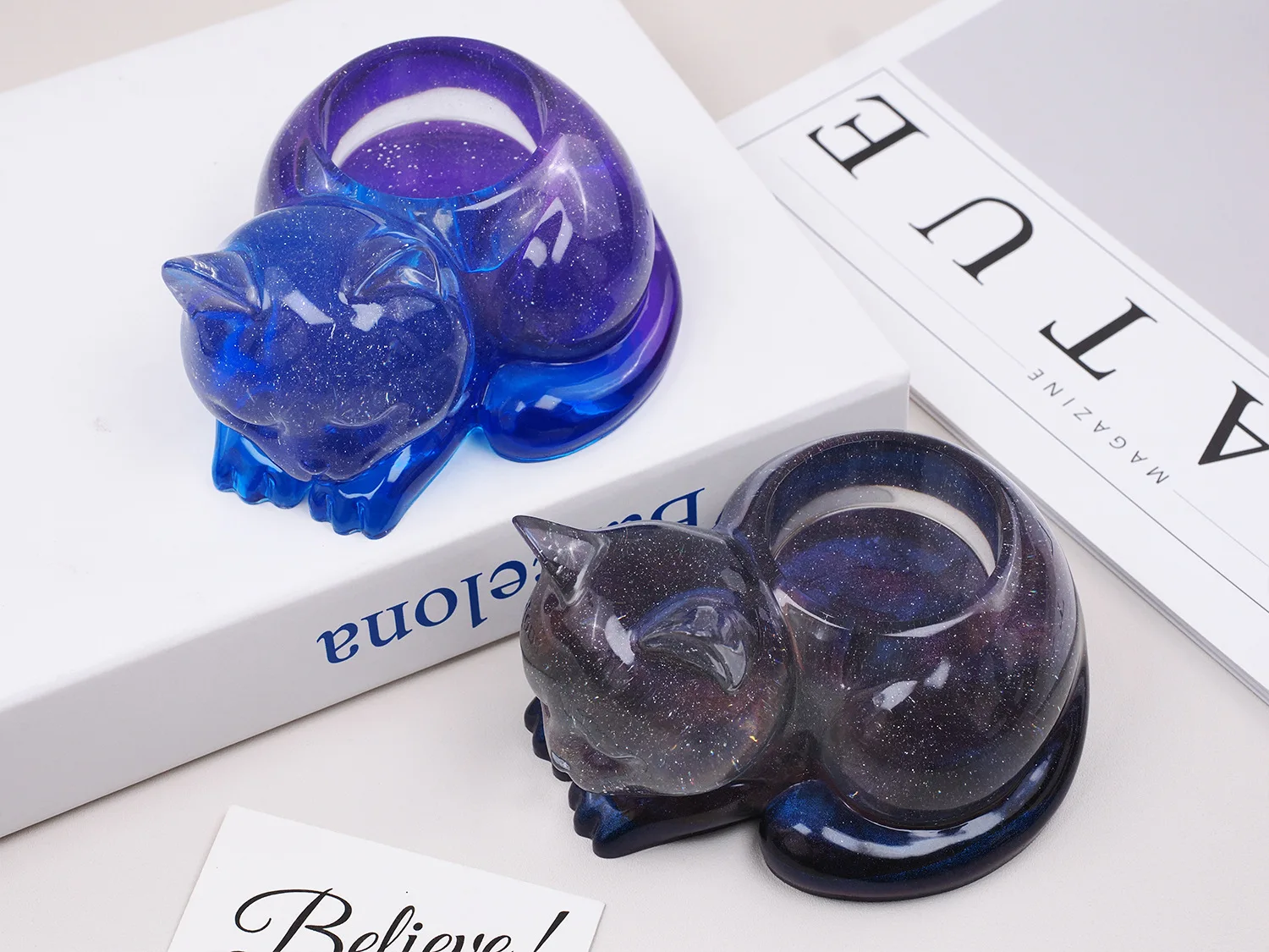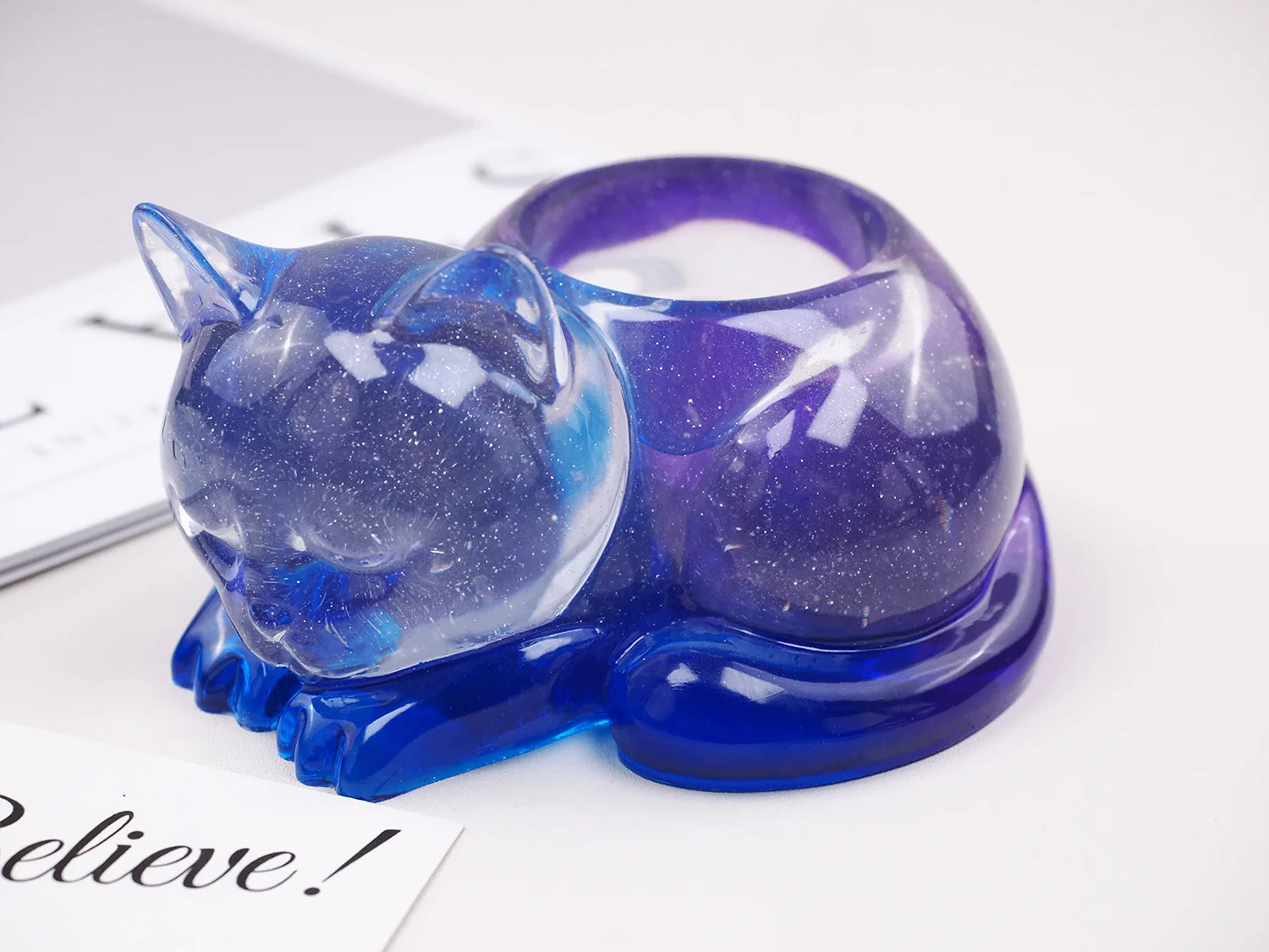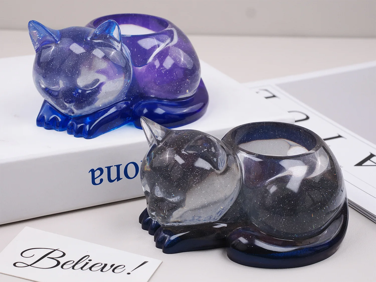 Sleeping Cat Memorial Silicone Mold for Resin Cat Candle Holder, Angel Animal Keepsake, Sympathy Gift, DIY Remembrance Craft